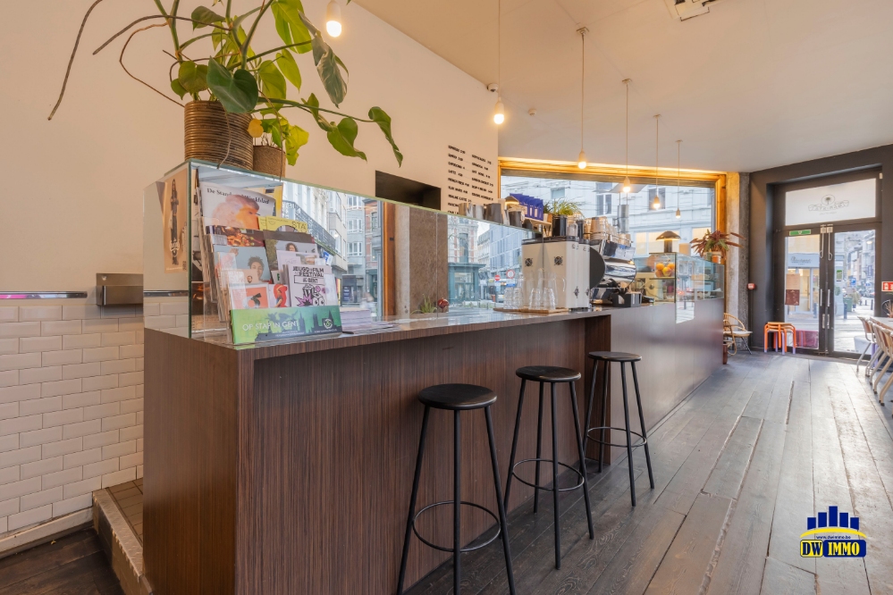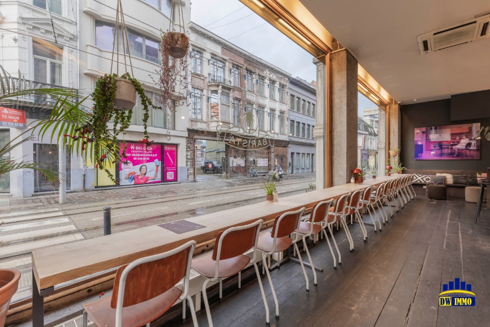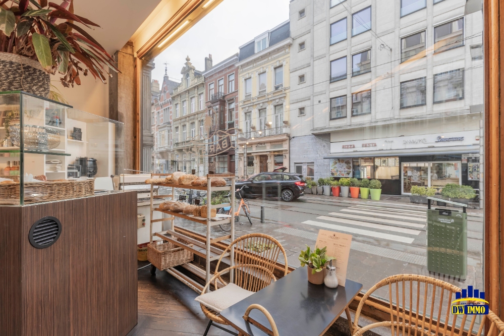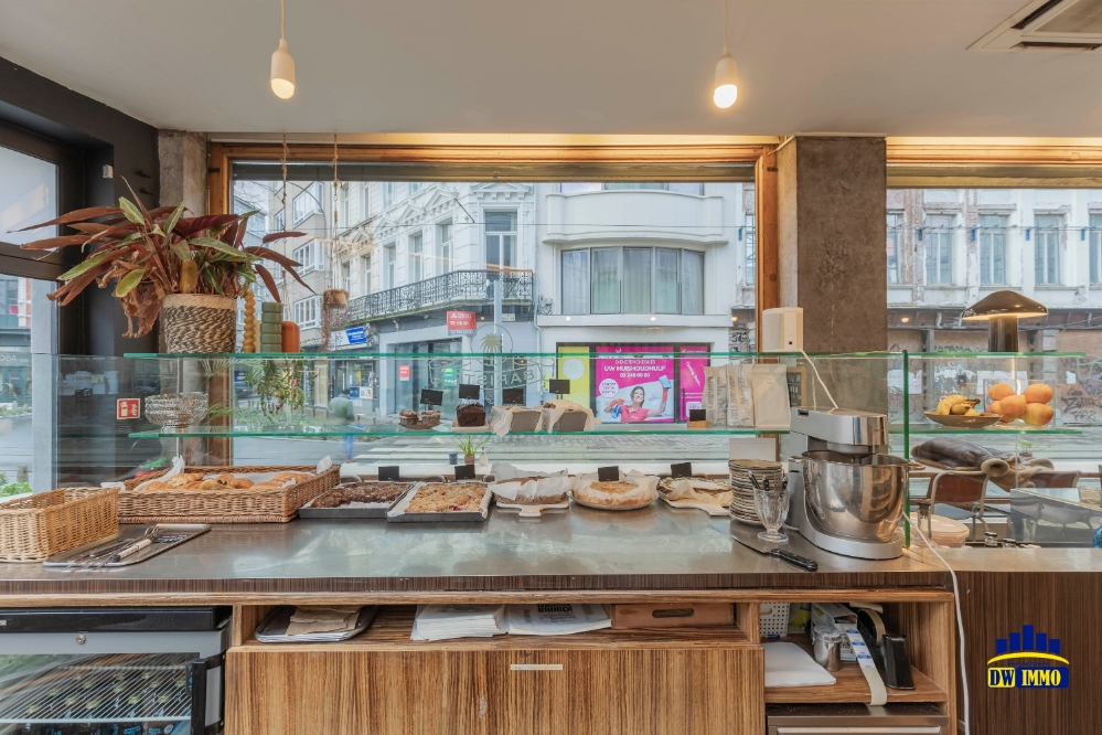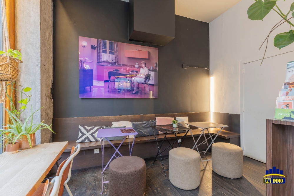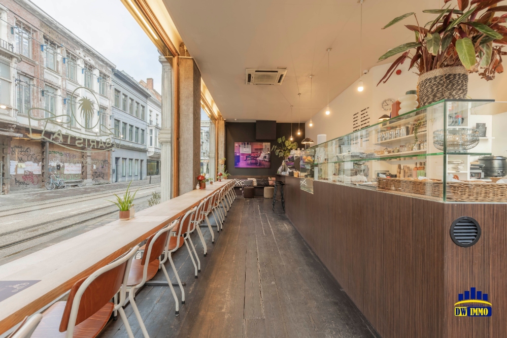 Hippe lunchplek met zonnig terras, volledig uitgerust handelspand te koop in Gent