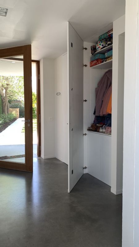 •Imposante glazen pivotdeur die toegang biedt tot de inkomhal met gastentoilet en vestiaire