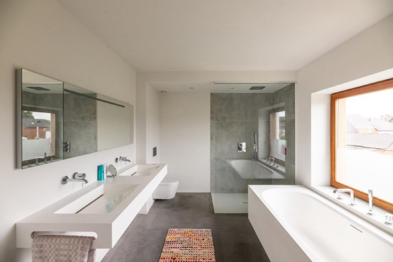 •Stijlvolle badkamer met design ligbad, inloopdouche, dubbel lavabomeubel en toilet