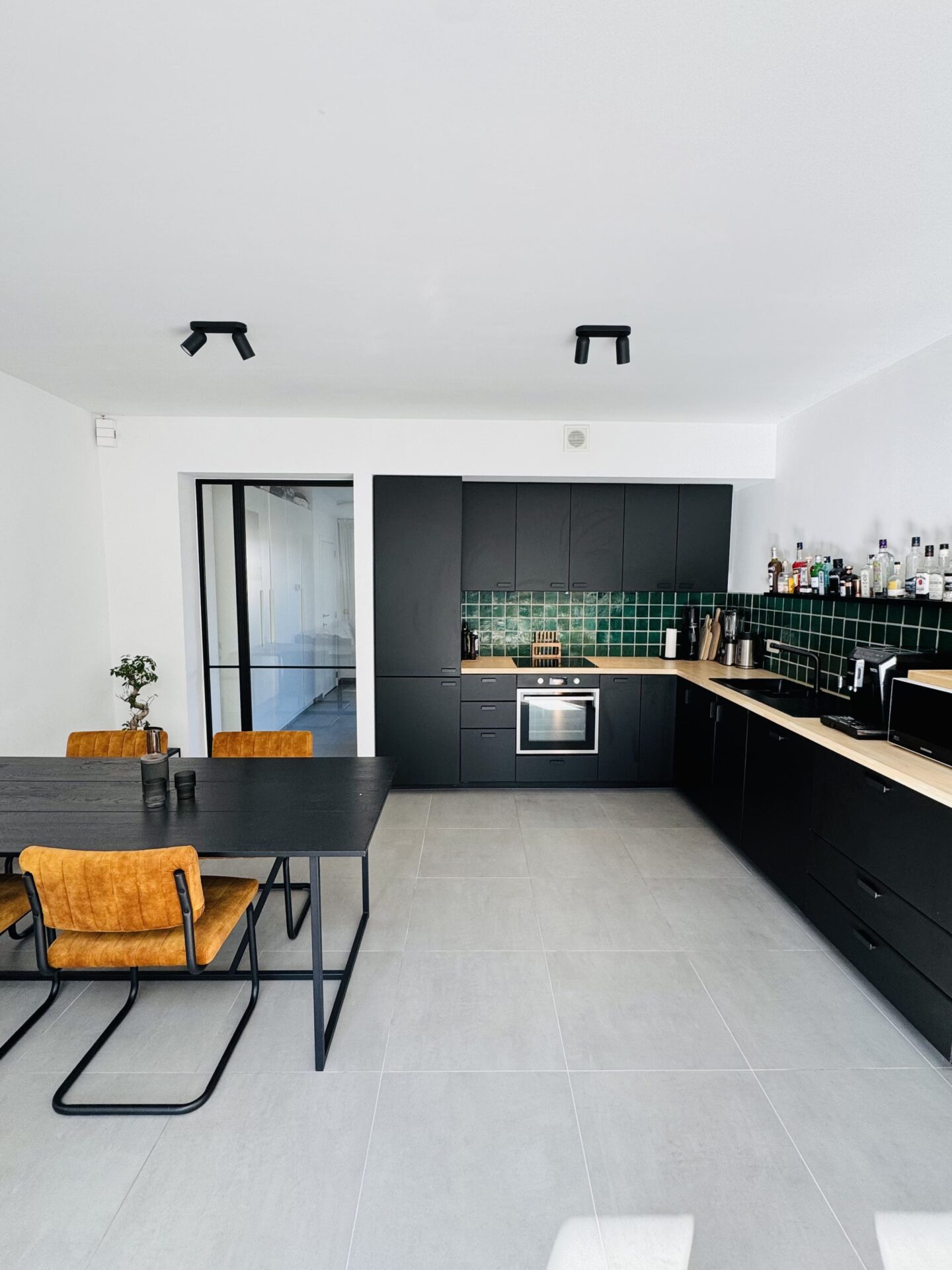 Met een EPC A-score geniet je hier van lage energiekosten en future-proof wooncomfort. De ruime leefruimte met grote ramen, schuifraam en lichtkoepel zorgt voor veel lichtinval. De moderne open keuken heeft een tijdloze zwarte afwerking en sluit mooi aan bij de stijl van de woning.