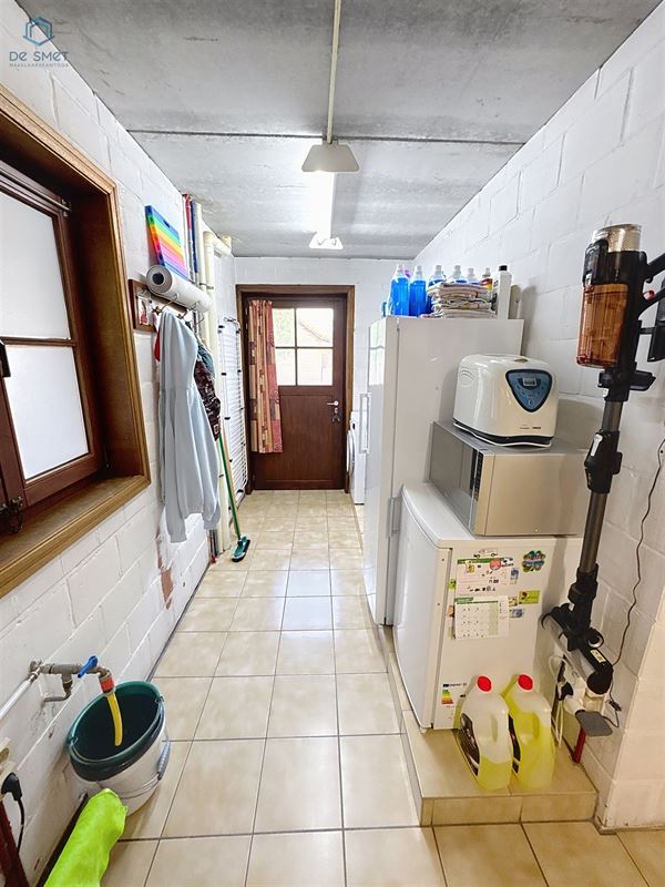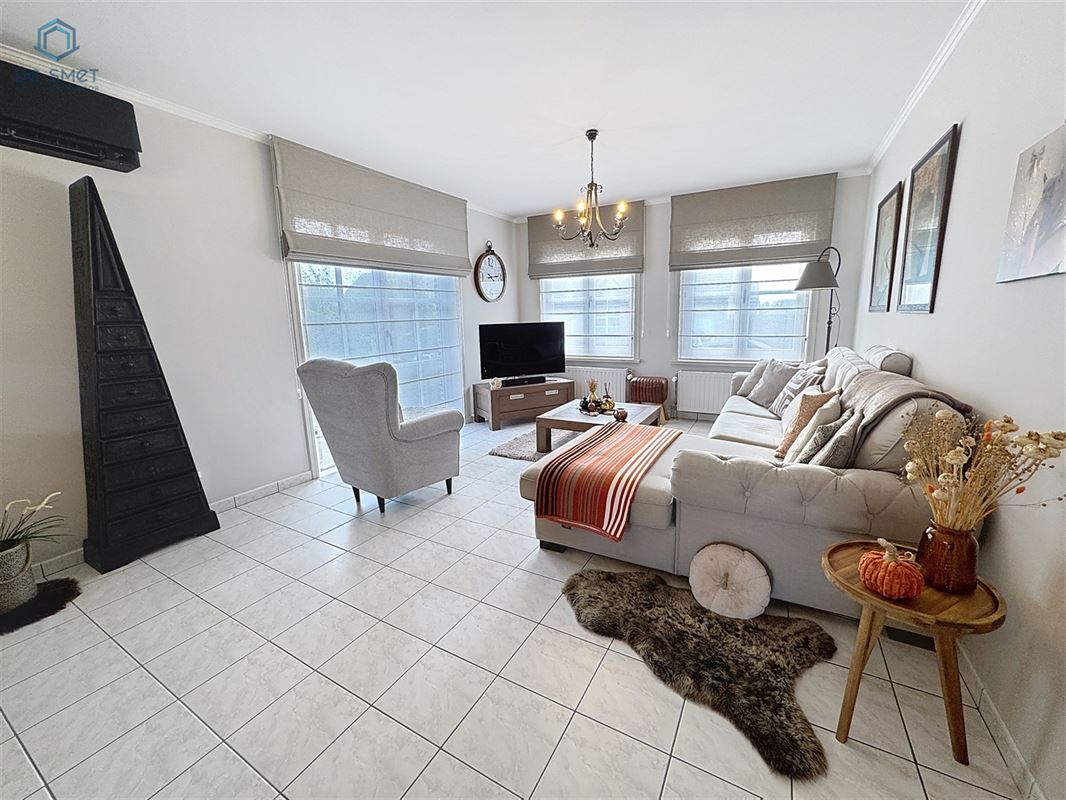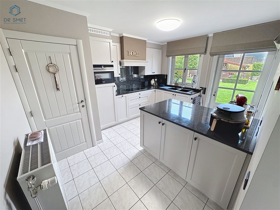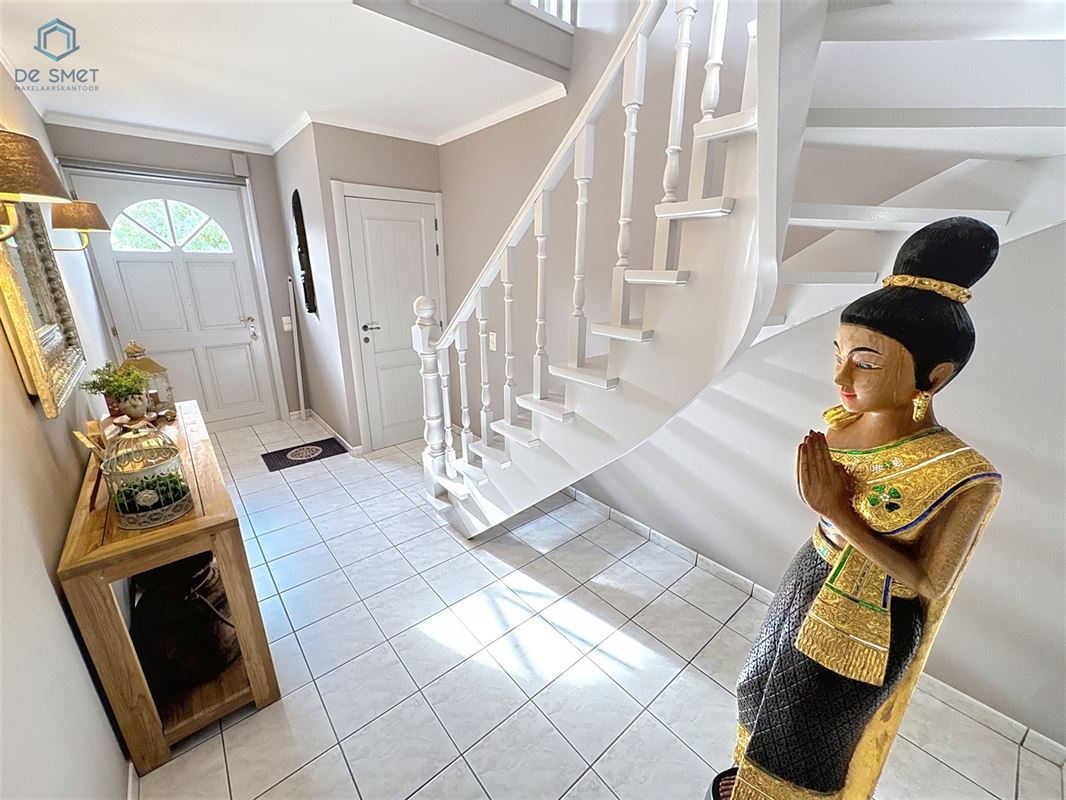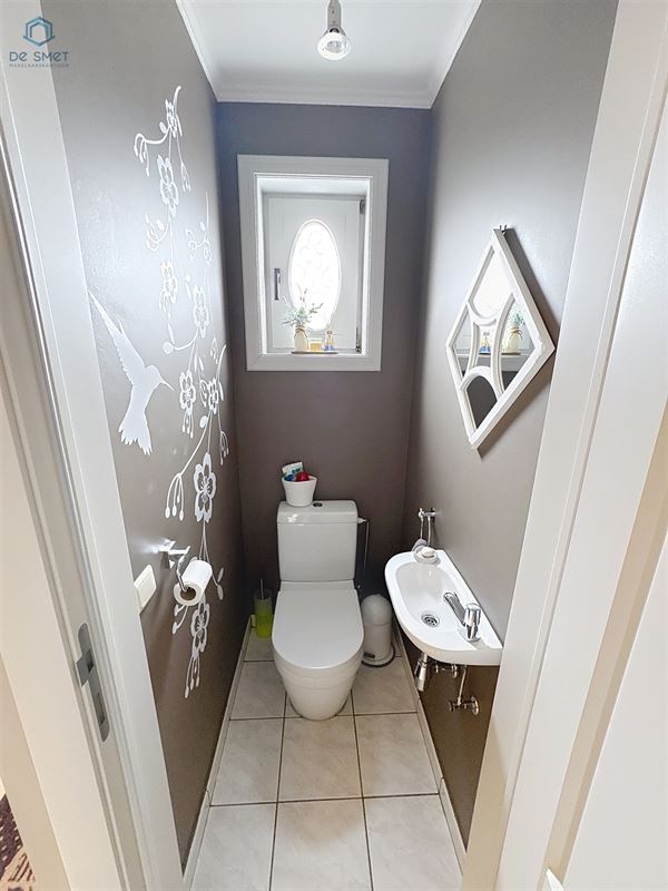 Ruime inkomhal met gastentoilet, een lichtrijke en gezellige leefruimte voorzien van airco, en een moderne, volledig uitgeruste keuken. Aansluitend vindt u de inpandige garage en praktische wasplaats.