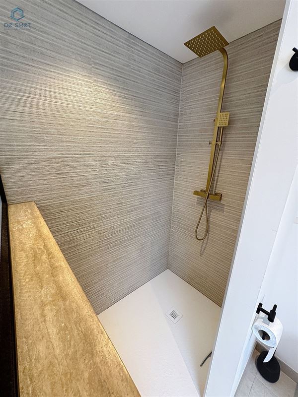 Bij binnenkomst wordt u verwelkomd door een royale inkomhal met stijlvolle smeedijzeren trapleuning en deuren. Het gastentoilet bevindt zich eveneens op dit niveau. De ruime, lichtrijke woonkamer beschikt over een gezellige zithoek met een moderne inbouwhaard, evenals een grote eetruimte, ideaal voor het ontvangen van gasten. De luxe keuken is recent volledig vernieuwd en voorzien van de modernste apparatuur. Verder is er een praktische wasplaats met doucheruimte, en een ruime garage van 45m² met sectionaalpoort.