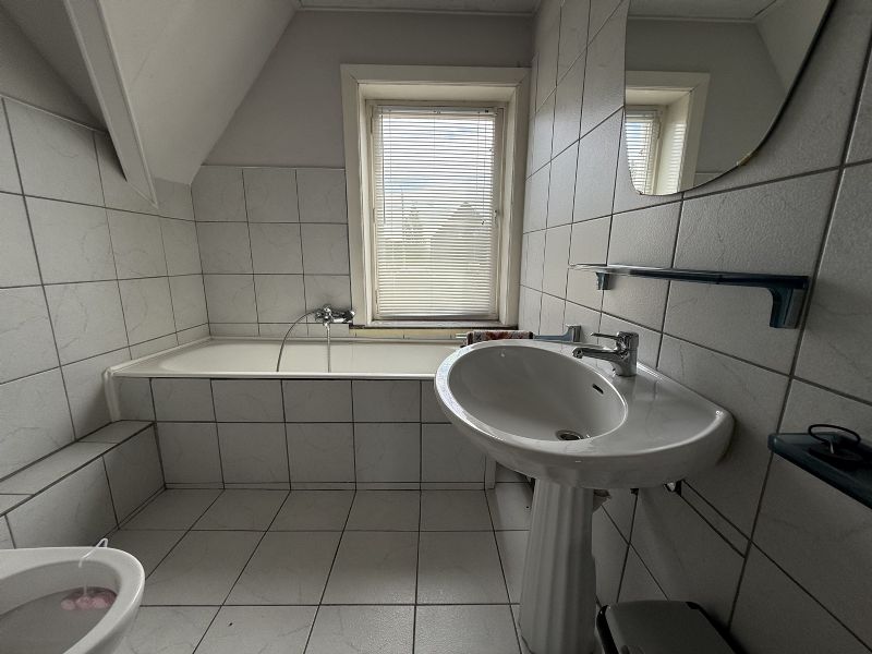 •Badkamer met lavabo, ligbad en toilet