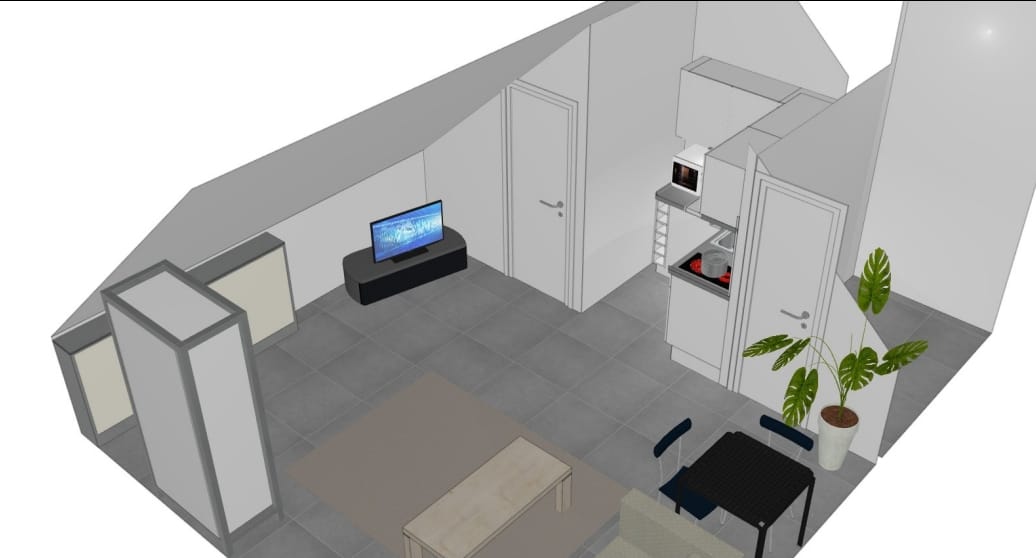 De studio is grotendeels vernieuwd in 2015. Voorzien van dubbel glas, ingerichte keuken en badkamer.