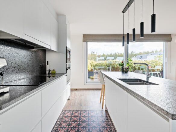 - Keuken: de keuken is afgesloten met een deur, waardoor je een rustig en opgeruimd gevoel behoudt in de rest van het huis. Achter de deur ontvouwt zich een functionele en gezellige ruimte, perfect om je culinaire creativiteit de vrije loop te laten.