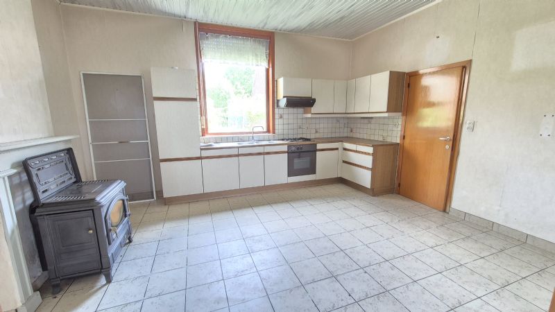 Prachtig gelegen op te frissen woning met 3 slpkmrs, grote tuin, ruime garage en tal van buitenbergingen. Opp 1809m². (Ref.16588)