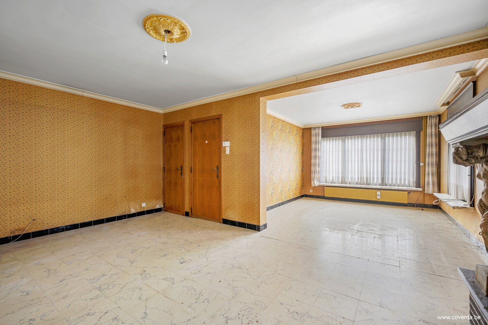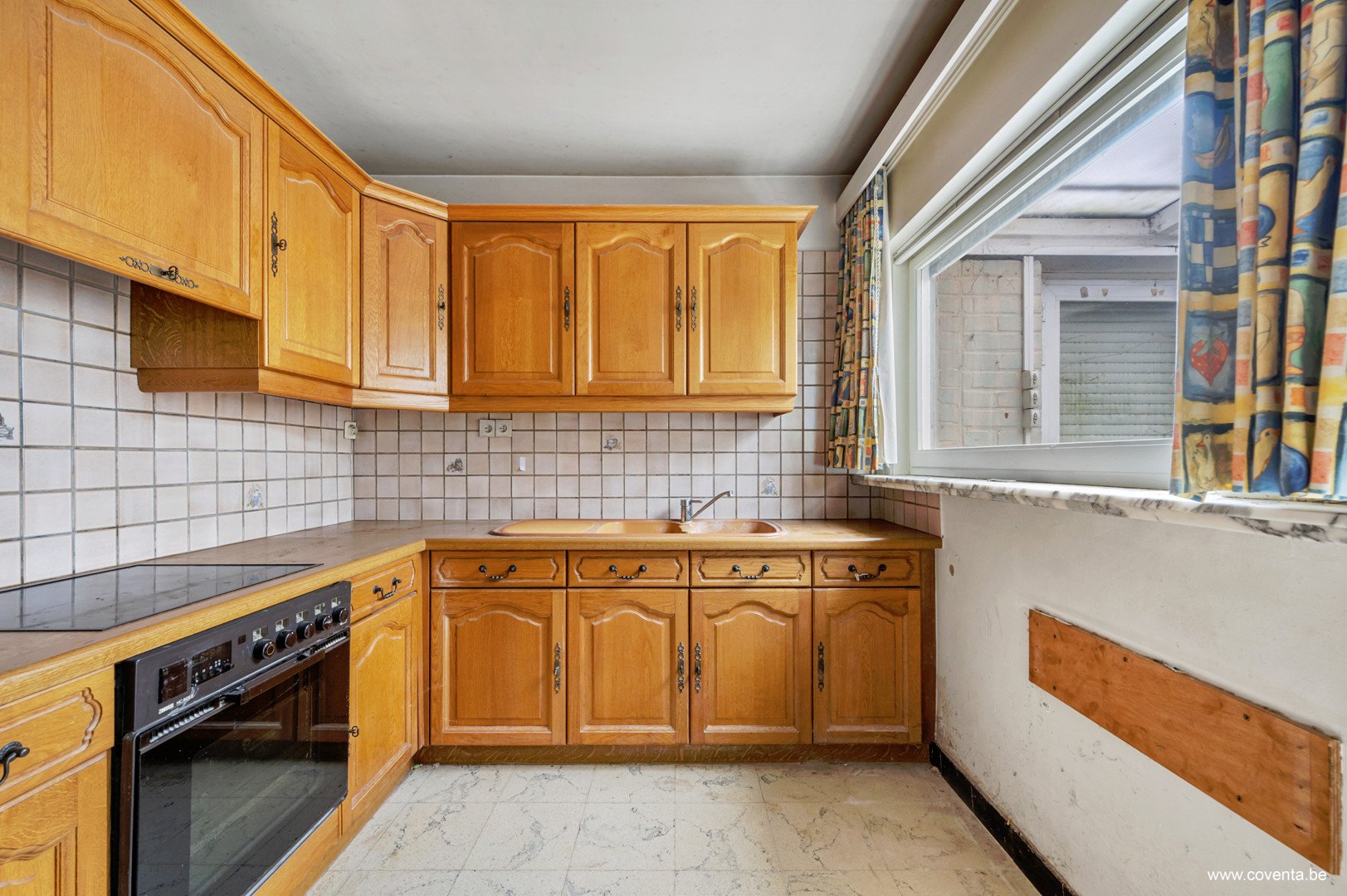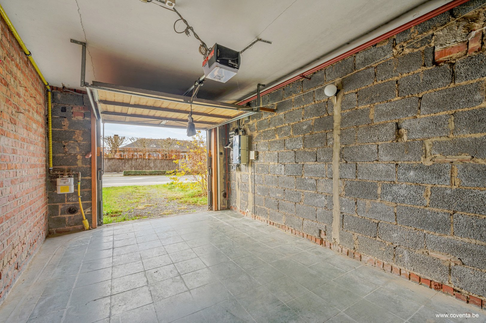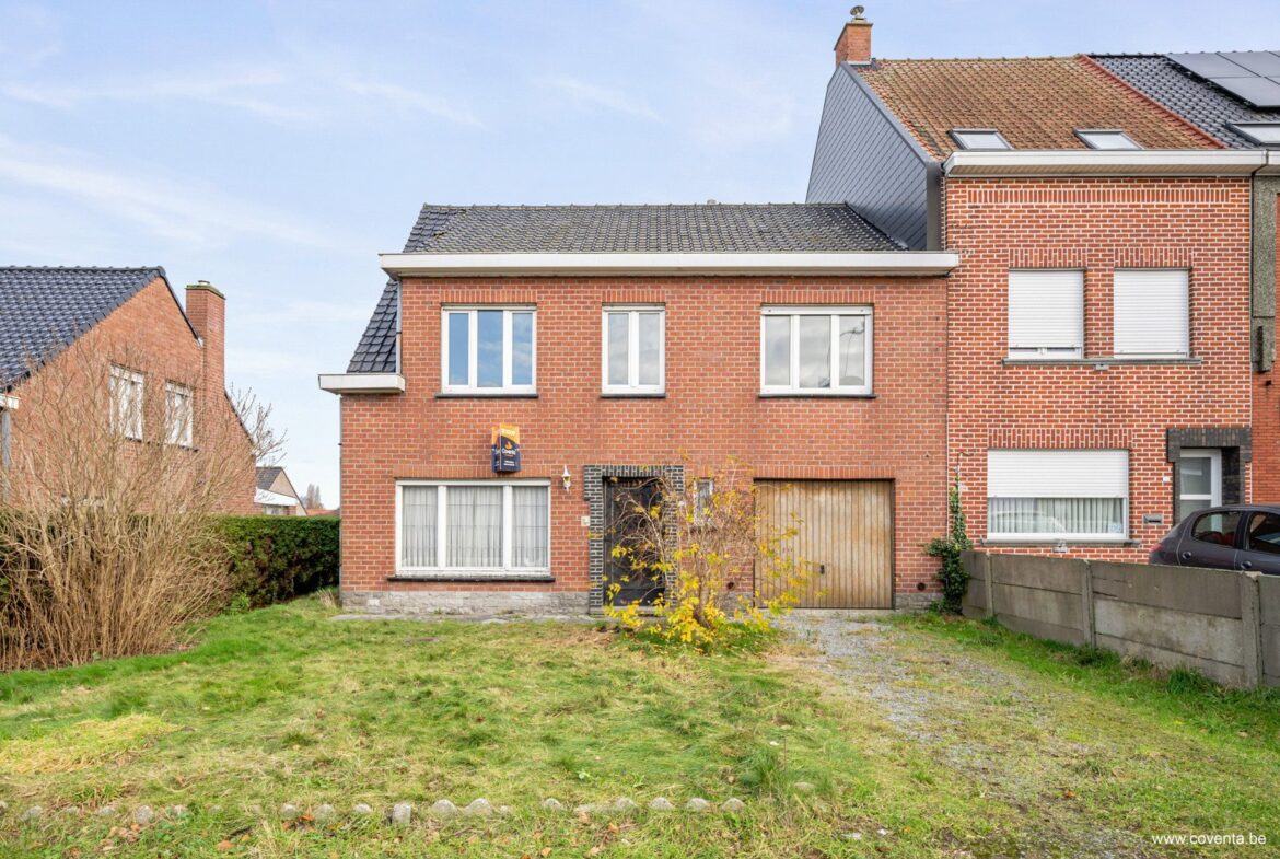 Te moderniseren half open bebouwing bestaande uit: inkomhal, woonkamer – salon in L-vorm met aansluitende keuken en veranda, toilet, wasplaats/technische ruimte en garage. Kelder.