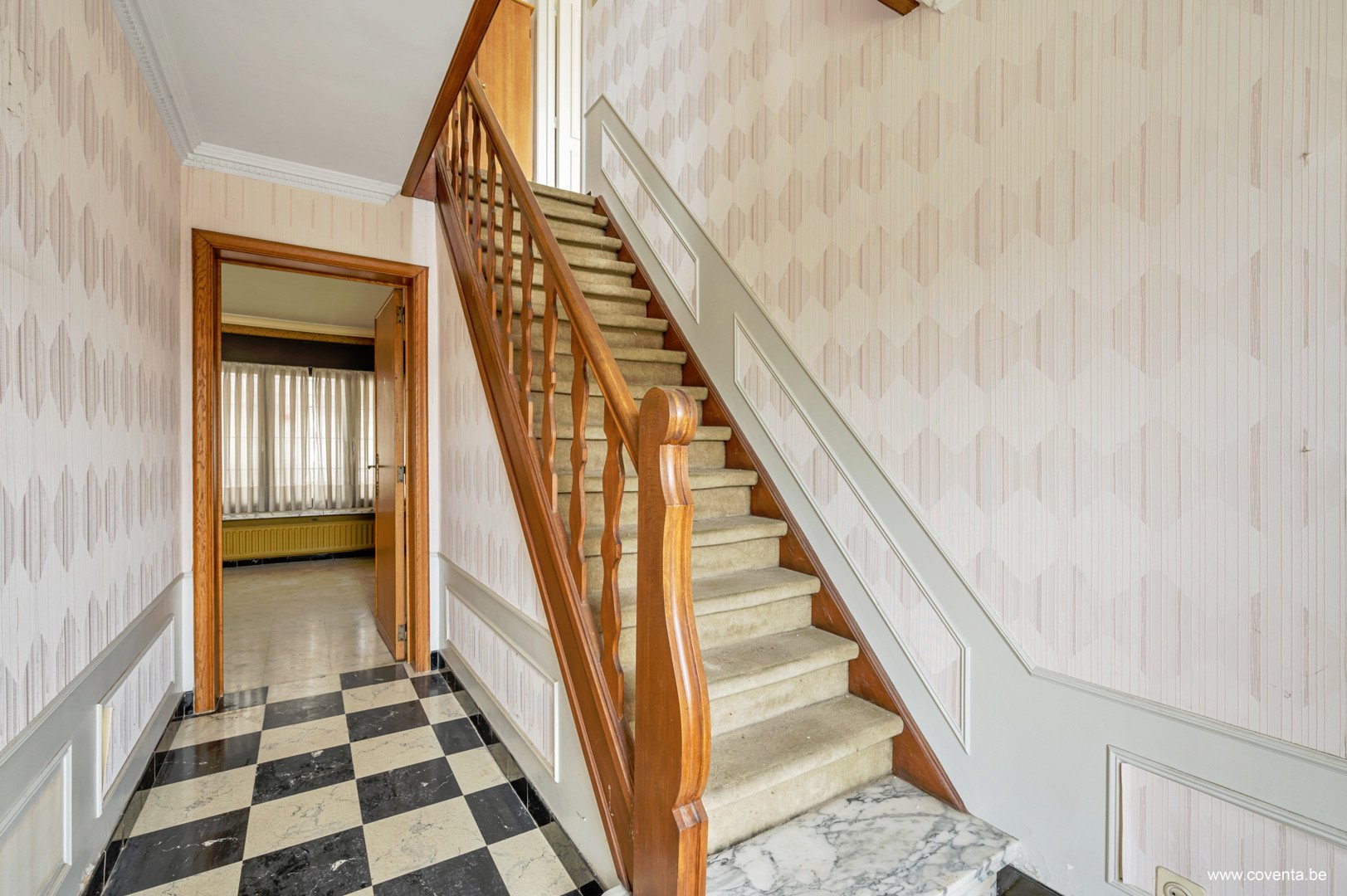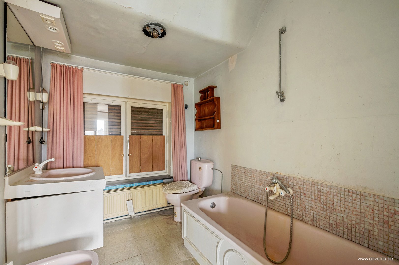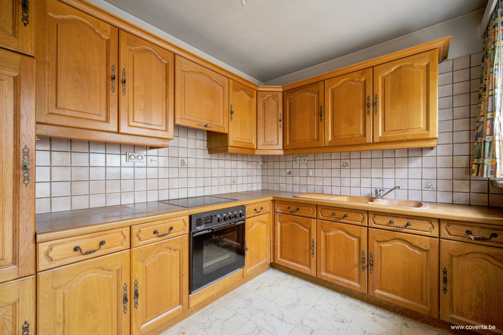 Te moderniseren half open bebouwing bestaande uit: inkomhal, woonkamer – salon in L-vorm met aansluitende keuken en veranda, toilet, wasplaats/technische ruimte en garage. Kelder.