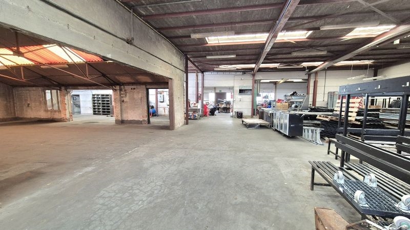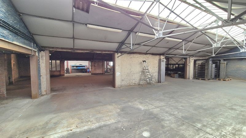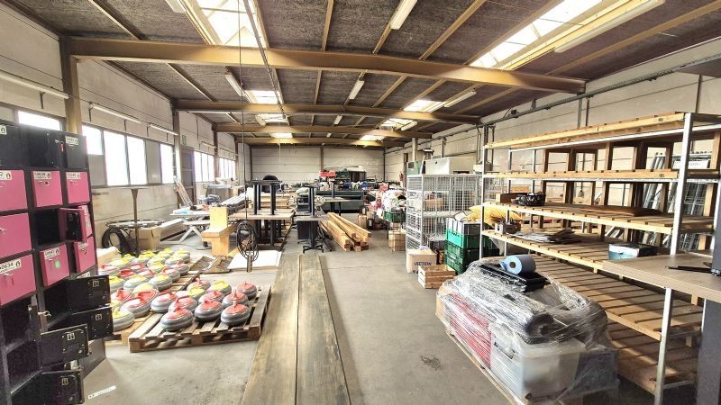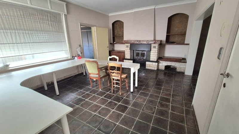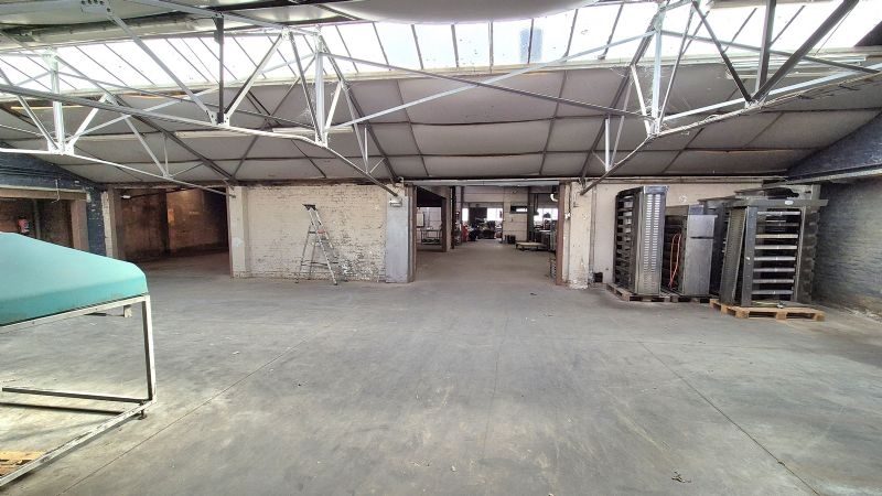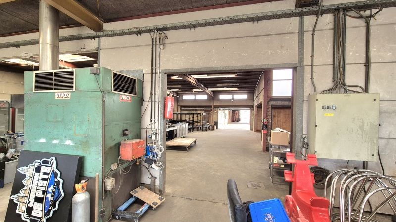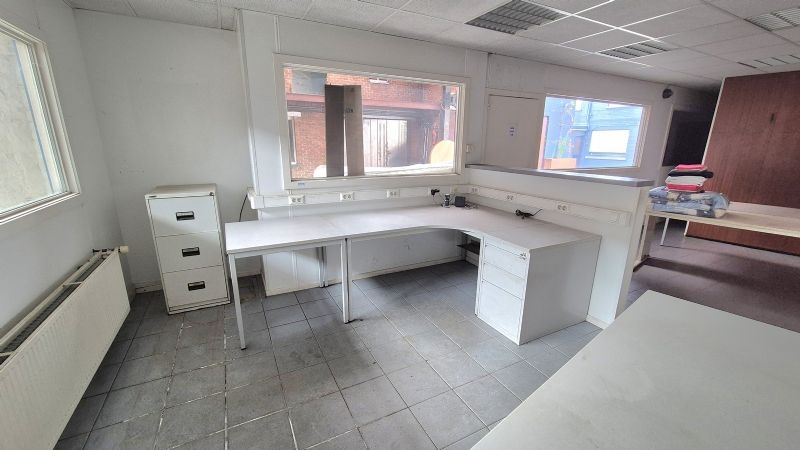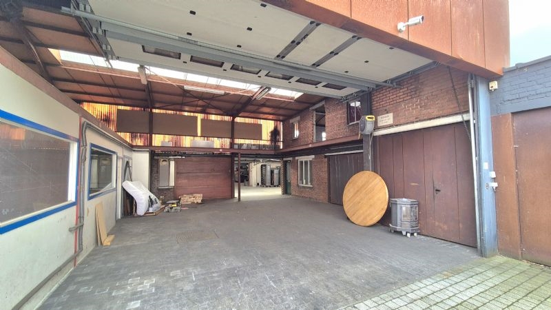 •Groot magazijn met bureel, sanitair, ontspanningsruimte en refter toegankelijk via naastliggende oprit met poort