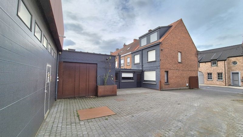 Zeer goed gelegen hoekwoning en groot magazijn te Izegem, ideaal voor zelfstandige, omvattende o.a. op het GELIJKVLOERS: