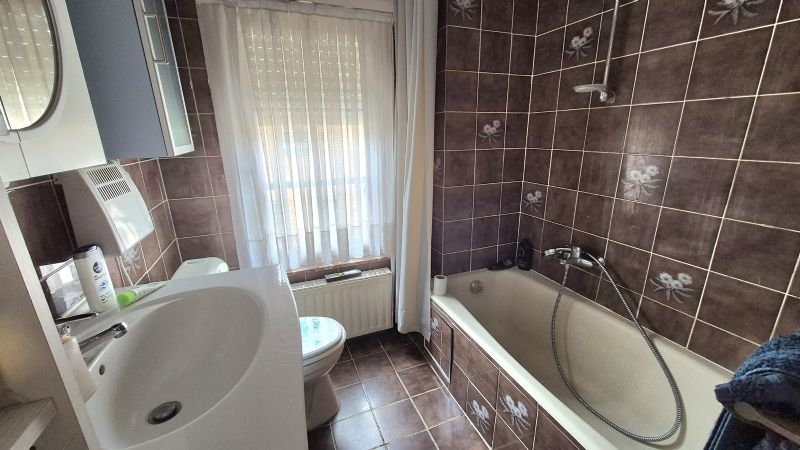 •Badkamer met ligbad en lavabo