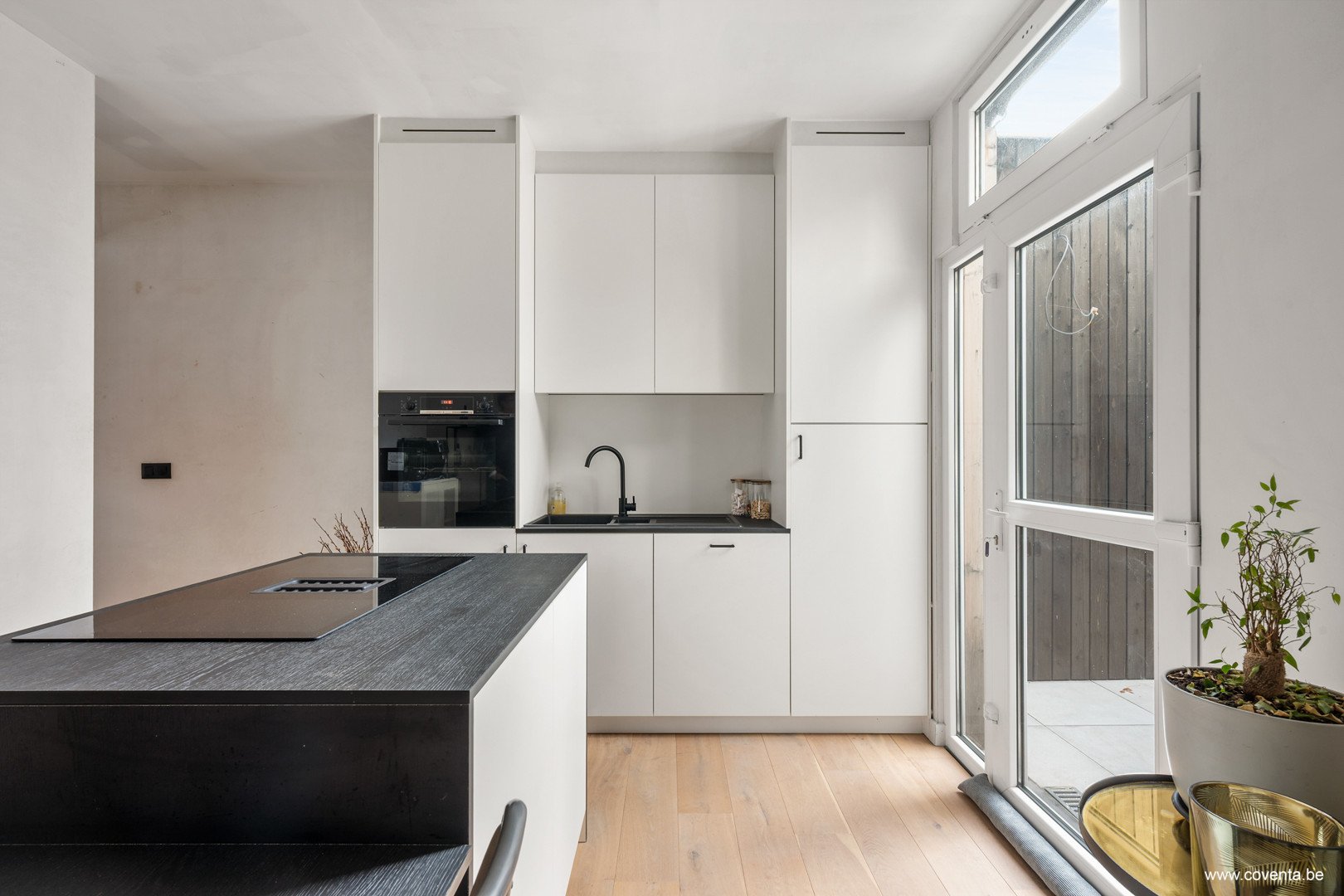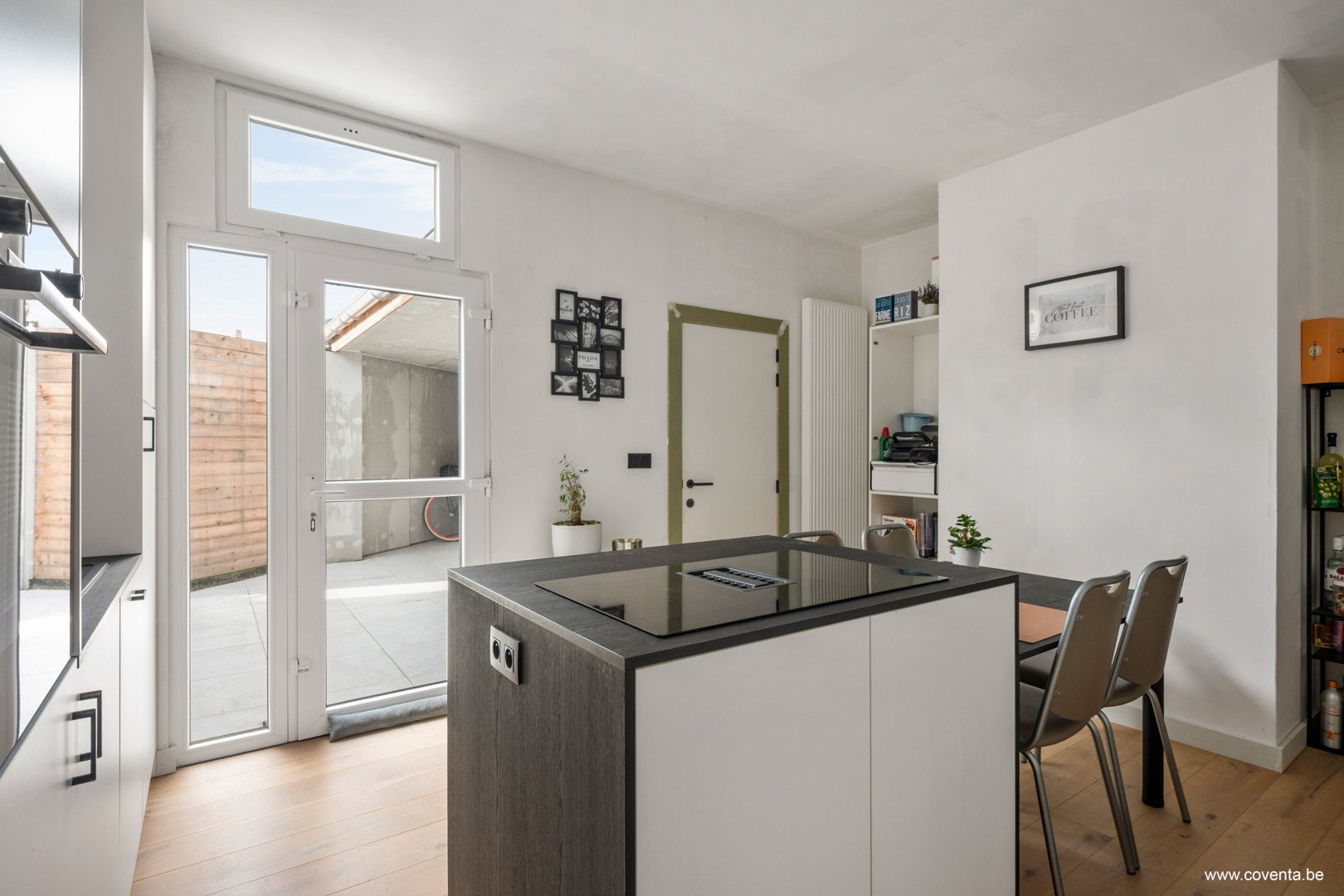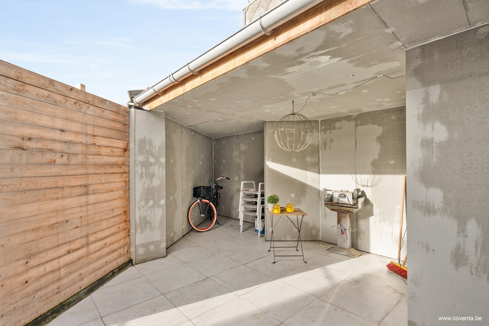 Deze woning werd recent (2024) totaal vernieuwd en beschikt over zijn woonkamer met aanpalende ingerichte keuken met toegang naar de stadstuin/terras dewelke deels overdekt is. Toilet en berging.