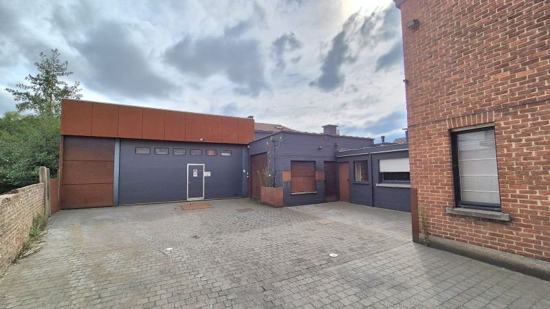 •Groot magazijn met bureel, sanitair, ontspanningsruimte en refter toegankelijk via naastliggende oprit met poort