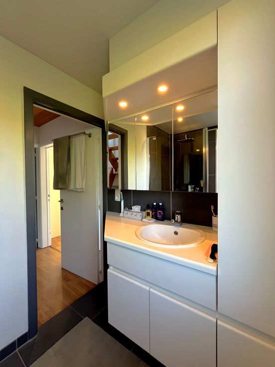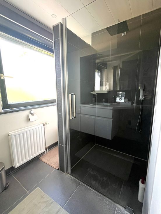 •Prachtige badkamer met lavabomeubel, inloopdouche en afzonderlijk toilet