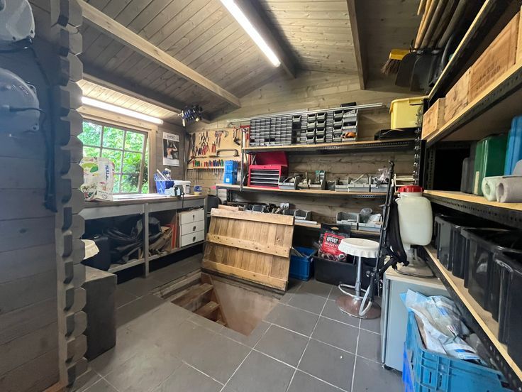 •Ruime garage, carport en tuinhuis met (wijn)kelder