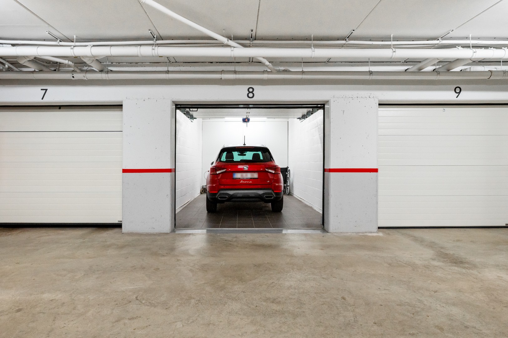 - Garagebox en autostaanplaats in ondergrondse garagecomplex: het appartement is voorzien van een ruime garagebox met automatische poort en ingebouwde kasten in het ondergronds garagecomplex (-1). U heeft er plaats voor 1 wagen heel wat opbergruimte. Ook is het appartement voorzien van een autostaanplaats, met mogelijkheid tot instaleren van een laadpaal. Voor de fietsliefhebbers is er een gemeenschappelijke fietsenstalling in het ondergronds garagecomplex voorzien. U bereikt het verdiep -1 via de lift of de trap. Deze garagebox en autostaanplaats kunnen mee aangekocht worden voor €50.000.