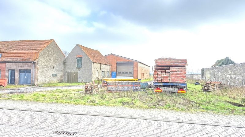 Ruime loods 400m² met bouwgrond voor bouwen hoekwoning. Opp. 2295m² (Ref. 16383).
