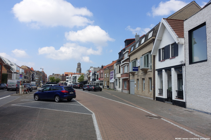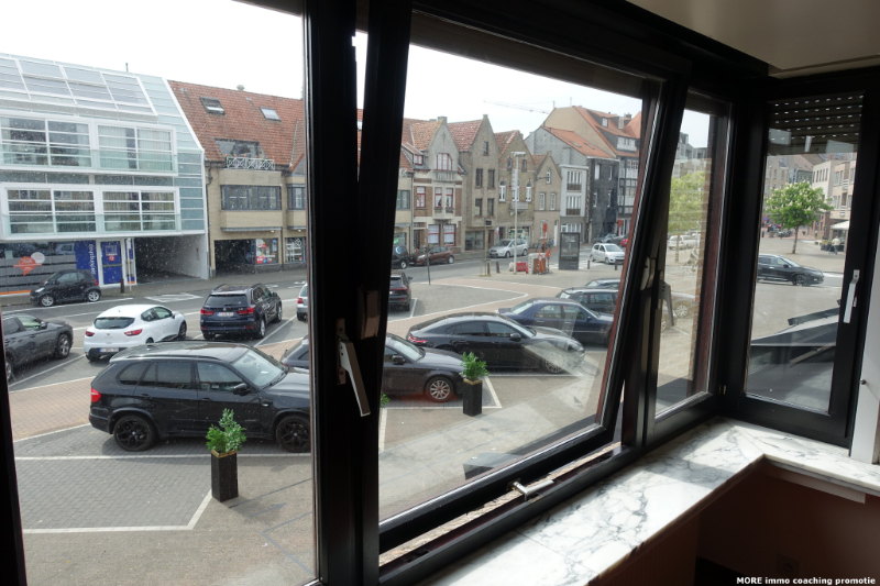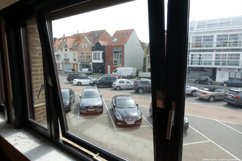 Duplexappartement met winkel onderaan te koop in Knokke. Ouder maar praktisch comfort.