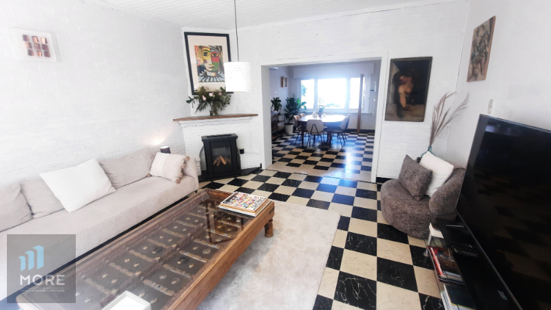 RUIME RIJWONING met heel wat mogelijkheden. INDELING: gelijkvloerse verdieping: inkomhal, eetkamer, salon, ingerichte keuken, bijkeuken/wasplaats, toilet, koer, berging onder de trap. 1e verdieping: 3 ruime slaapkamers, badkamer met ligbad, tweede toilet. 2e verdieping: ruime 4de slaapkamer/hobbykamer onder dak, douchekamer en 5de slaapkamer, toegang tot de geïsoleerde zolderruimte. Ideaal voor wie op zoek is naar veel woonruimte midden in een woonkern. Interessante prijs voor de vele mogelijkheden die de woning biedt. Bel ons voor een vrijblijvend bezoek en ontdek het zelf! Mogelijkheid om in de directe omgeving een garagebox bij aan te kopen. De EPC-score dateert nog van voor dat de woning werd uitgerust met zonnepanelen en airconditioningsysteem dat zowel voorziet in koude- als warmteproductie.