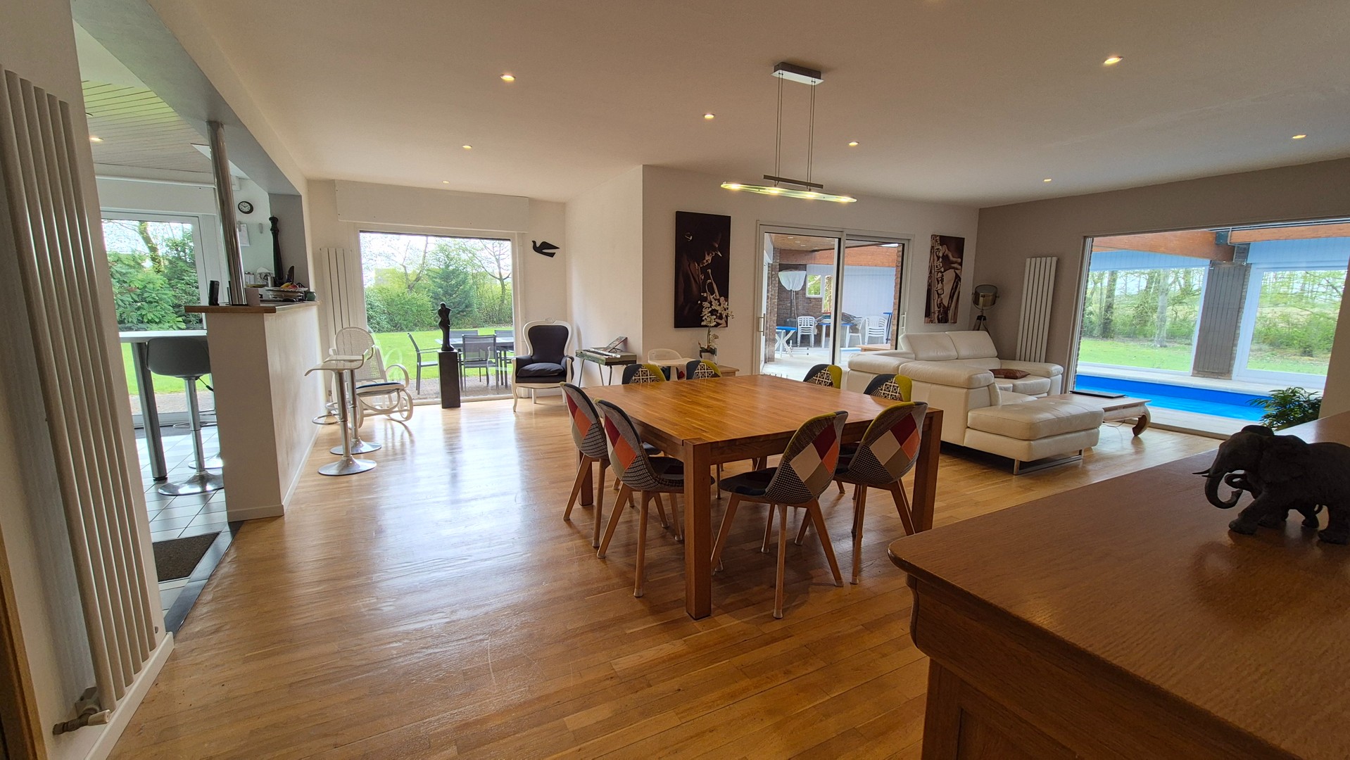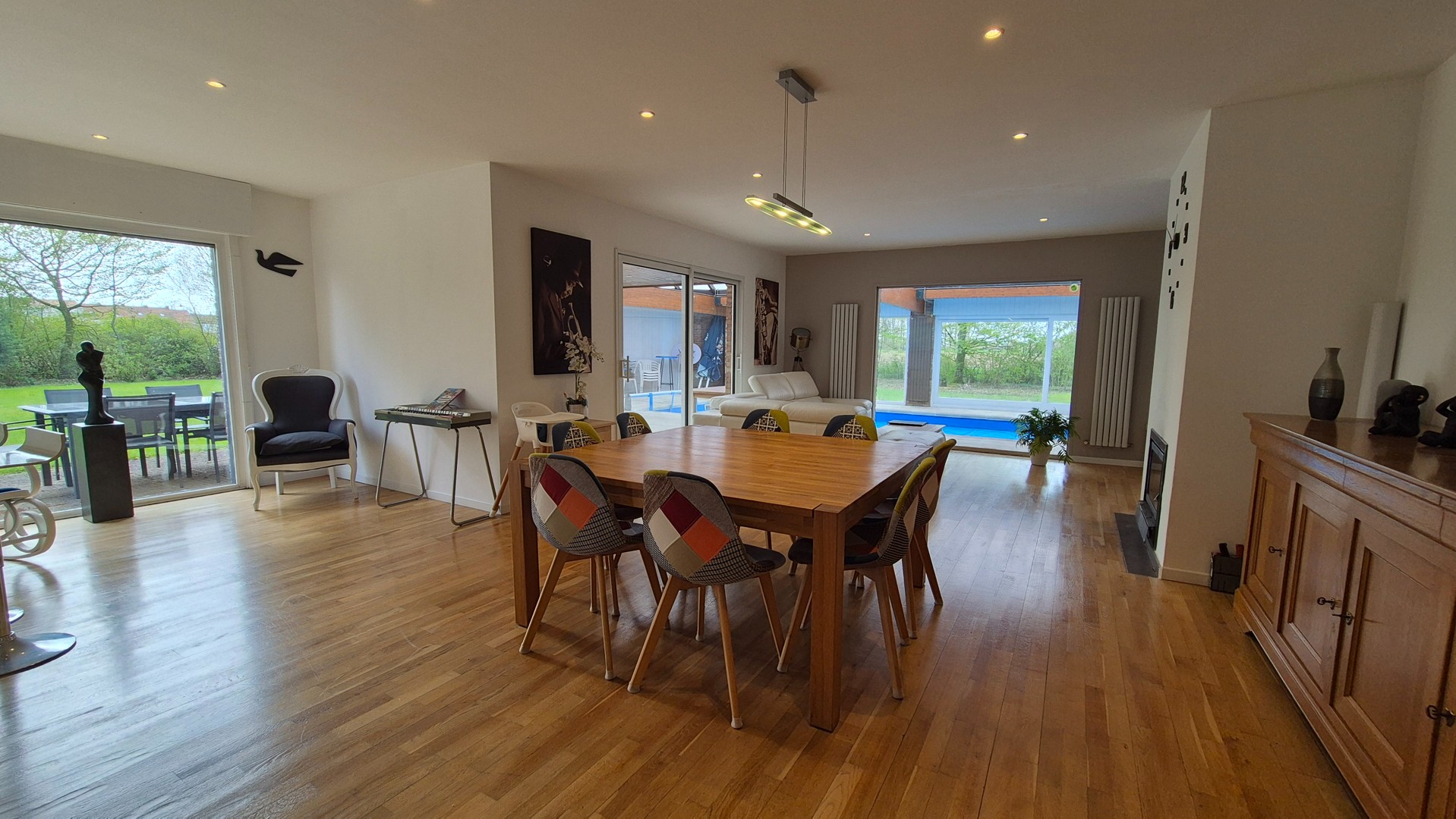 - Zeer ruime leefruimte van 44 m² met massieve eiken parketvloer