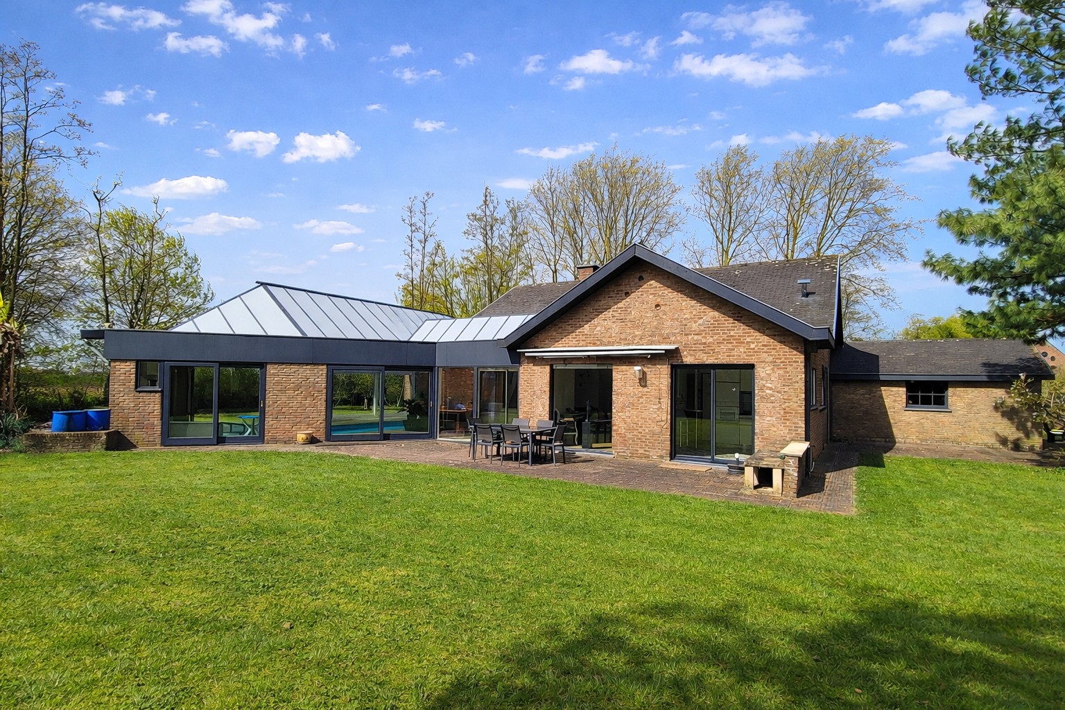 OPEN HUIS ZATERDAG 25/04 van 13.30u tot 14.30u. Ruime en lichtrijke villa met landelijk zicht, open keuken, 4 slaapkamers en een binnenzwembad. (Ref.17202)