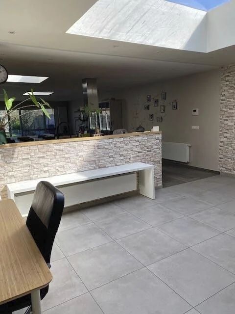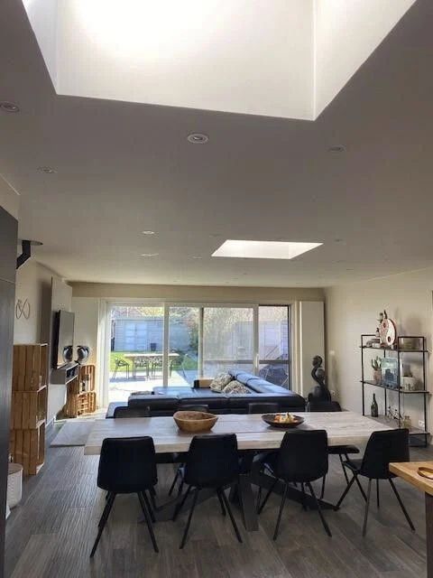 Verbazend ruime en prachtig gerenoveerde hoekwoning met oprit, nabij het centrum van Kuurne, omvattende o.a. op het GELIJKVLOERS: