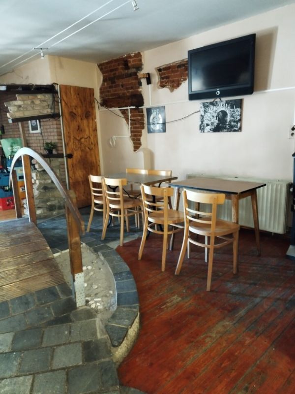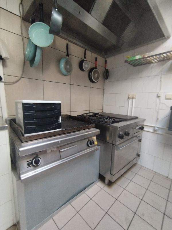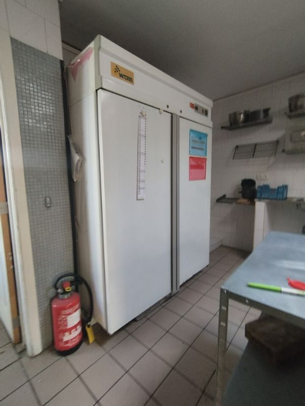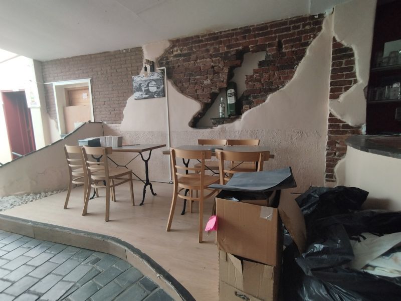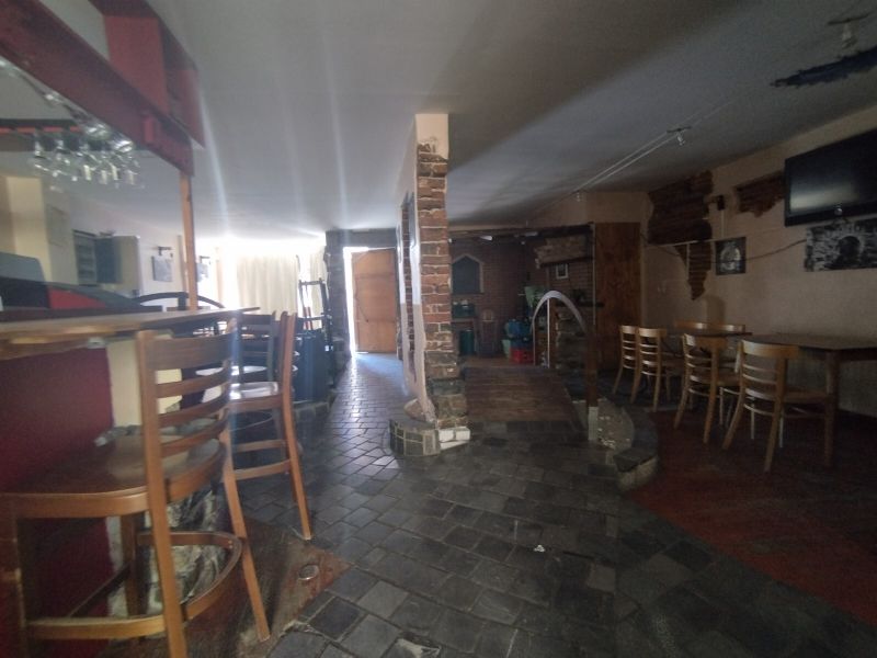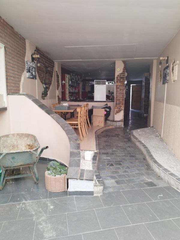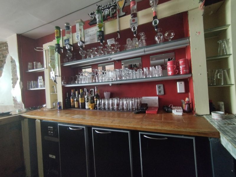 De handelszaak betreft een café met toog en zitplaatsen, industriële keuken, toiletten, dubbel lavabomeubel, enz…..