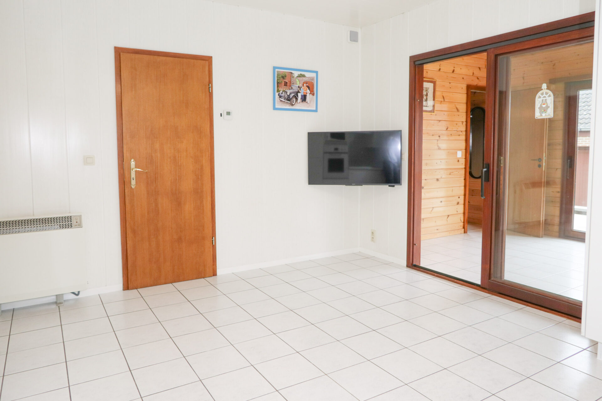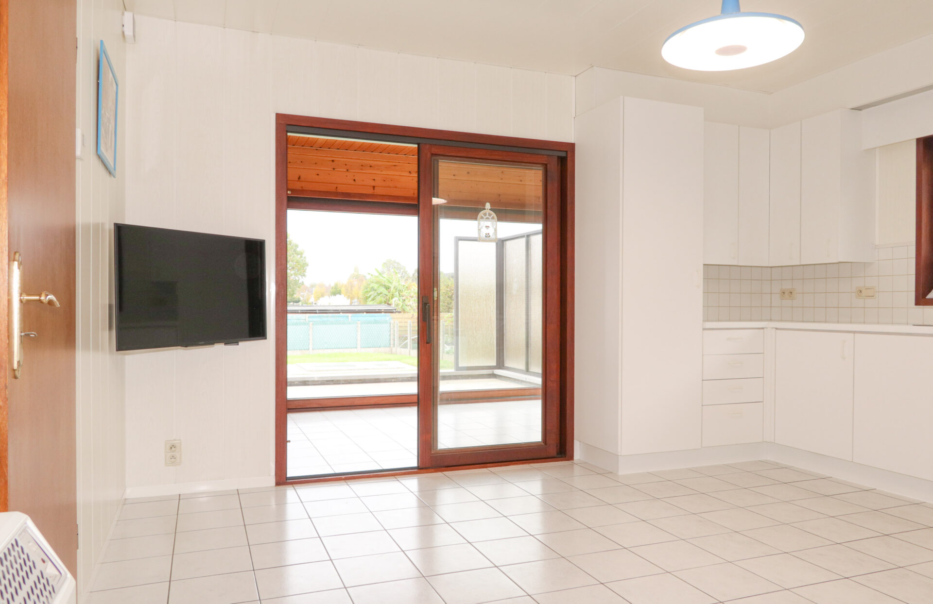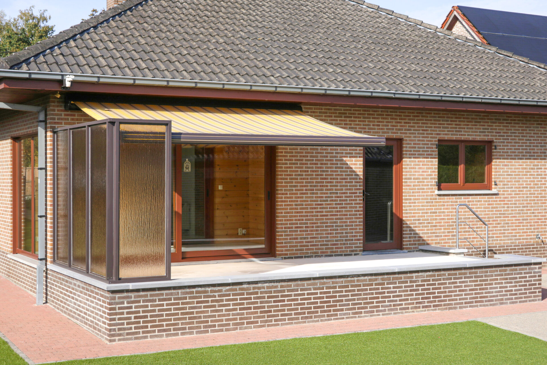 Een schuifdeur geeft toegang tot de veranda en die heeft een schuifdeur tot het terras.