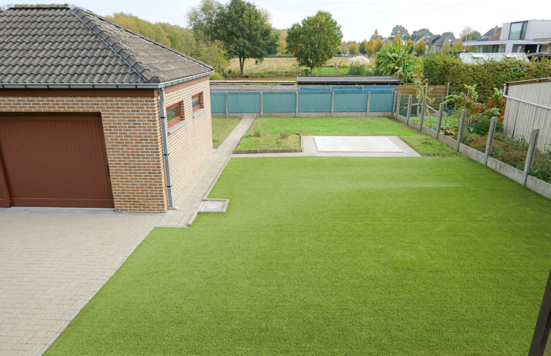 Rond het huis ligt er kunstgras van een hoge kwaliteit, geen grasmaaien en toch een mooi zicht.