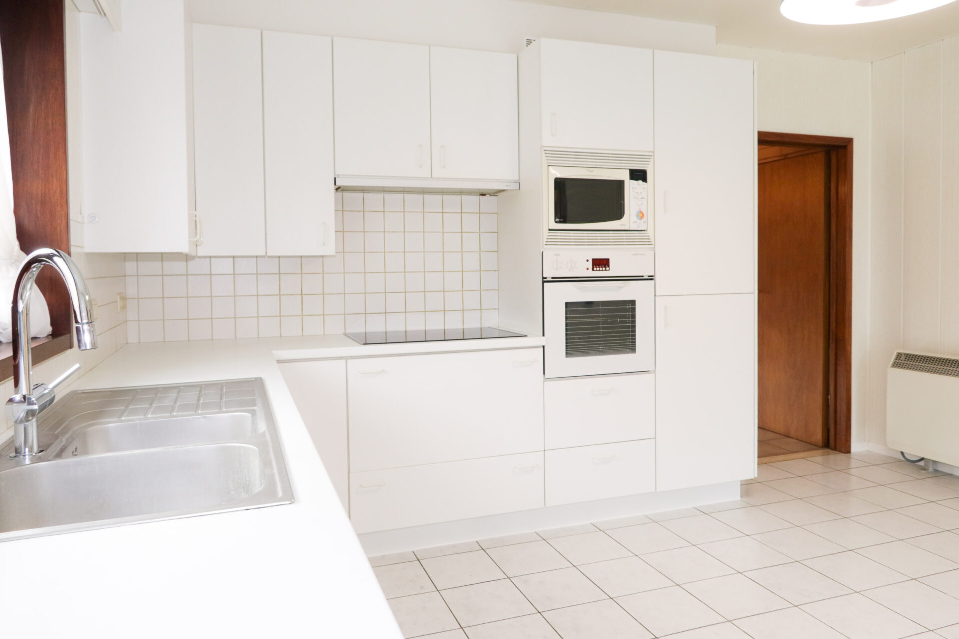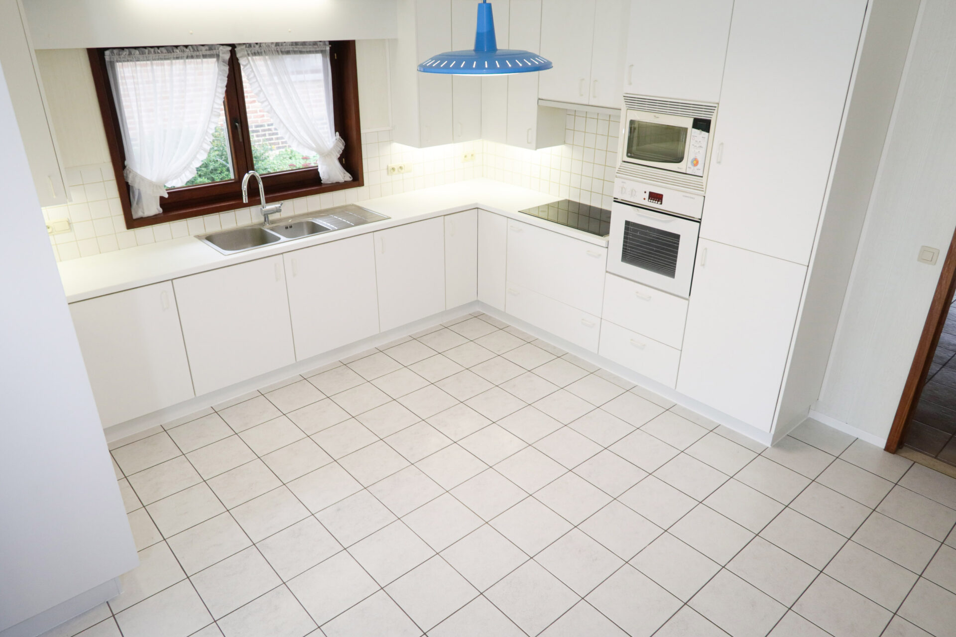 Een heel ruime, volledig ingerichte keuken met koelkast, aparte diepvriezer, hetelucht-oven,