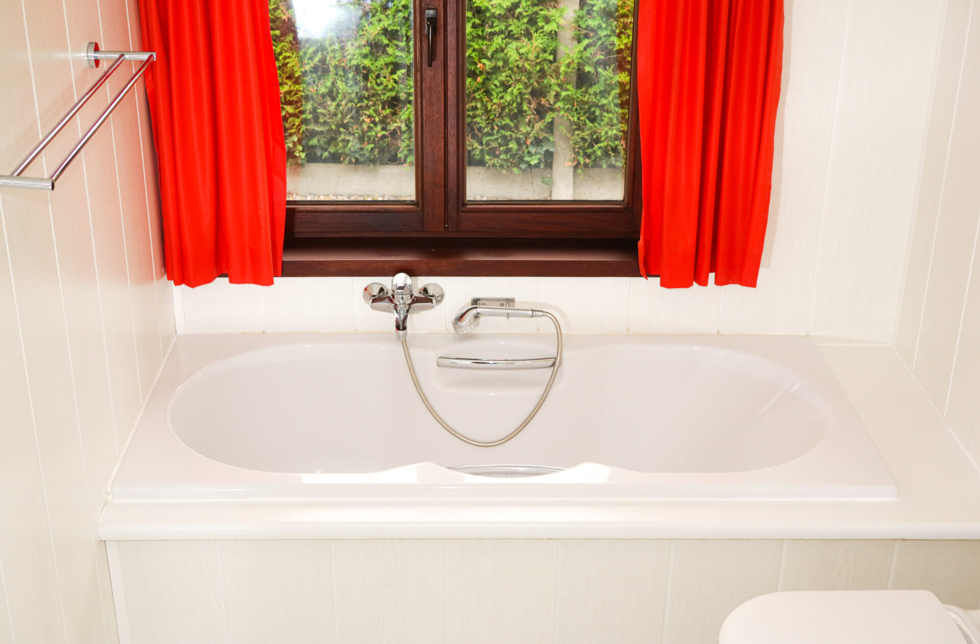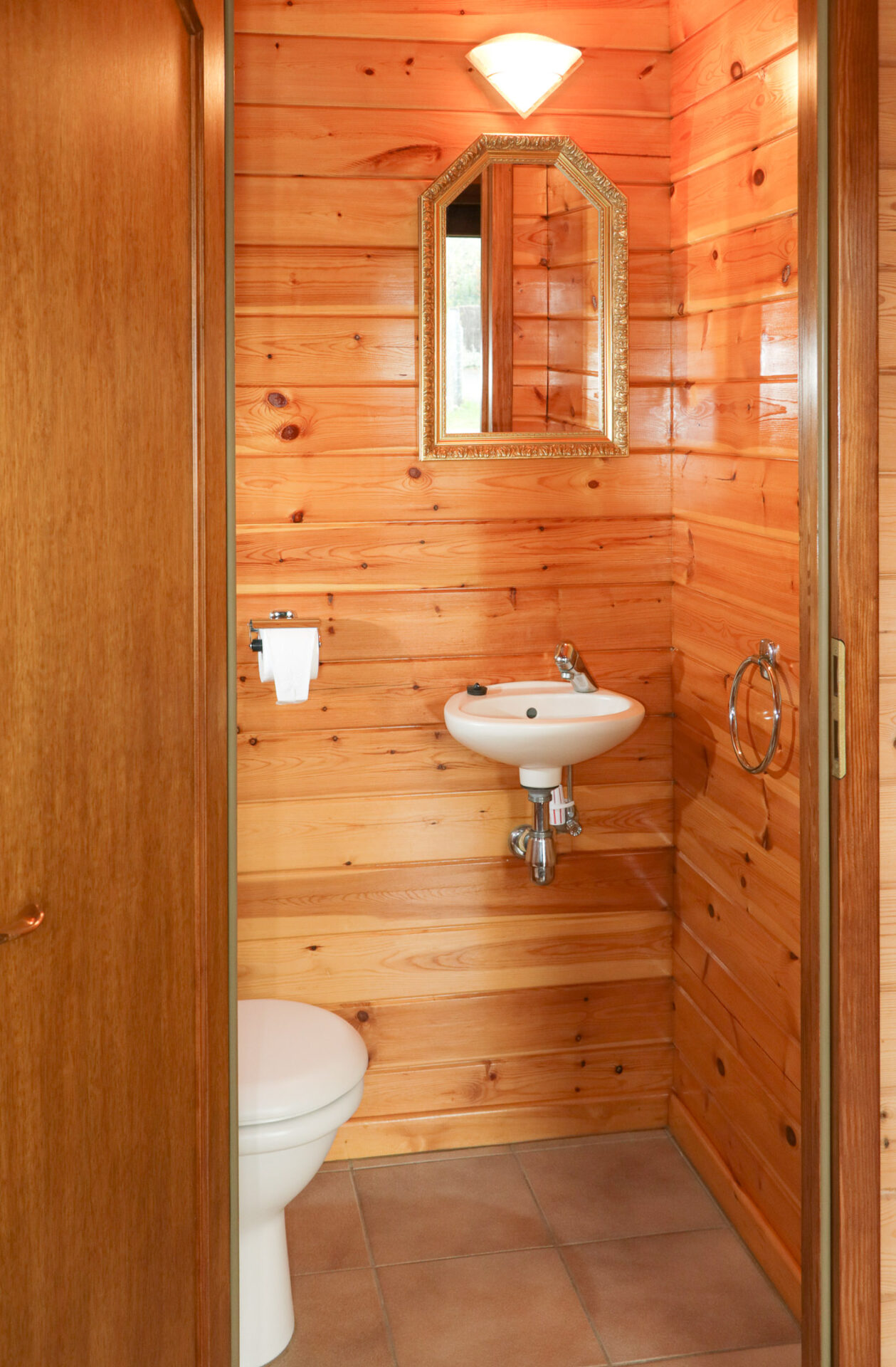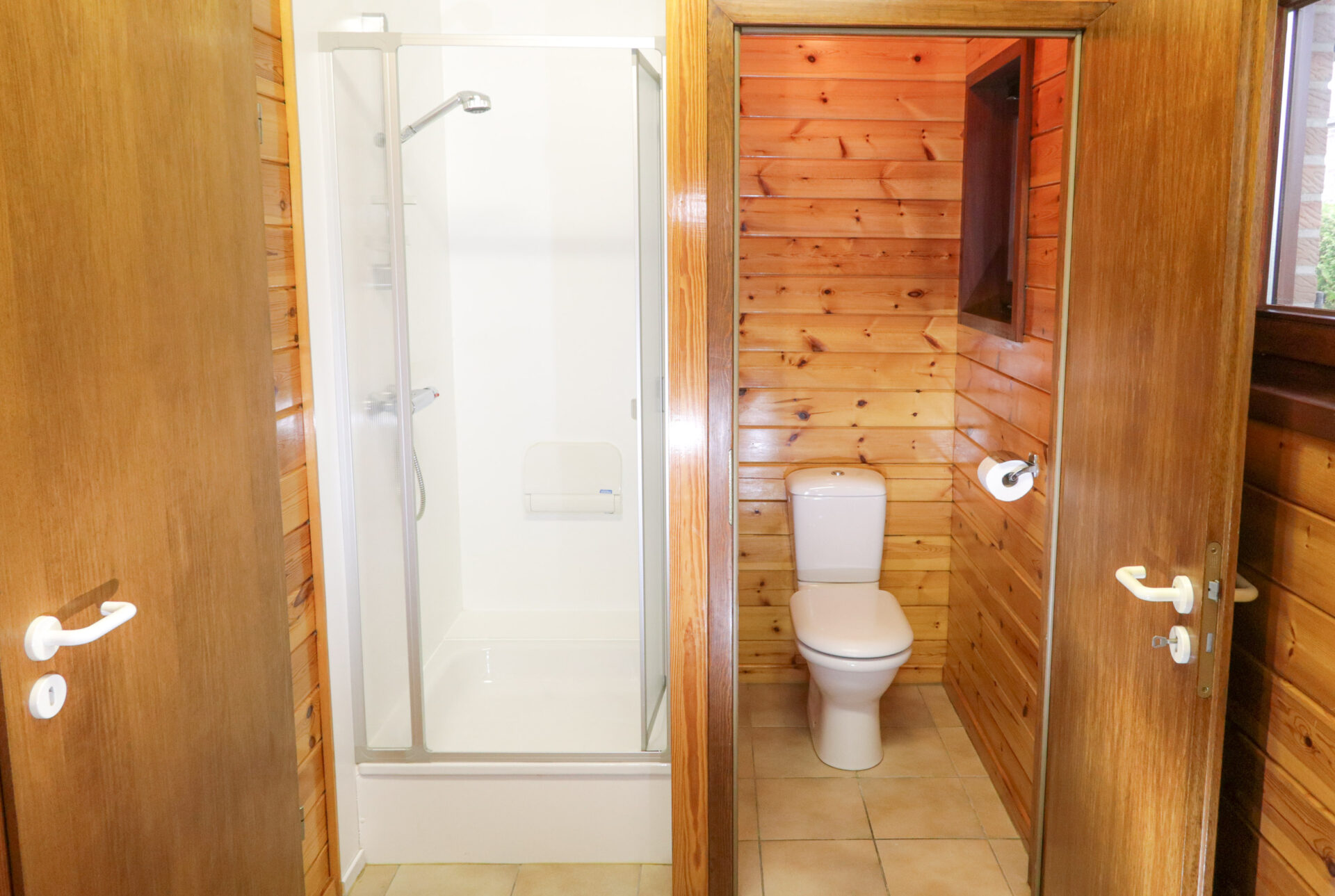 Naast de bijkeuken, dus aan de achterdeur, is er een apart toilet en douche.