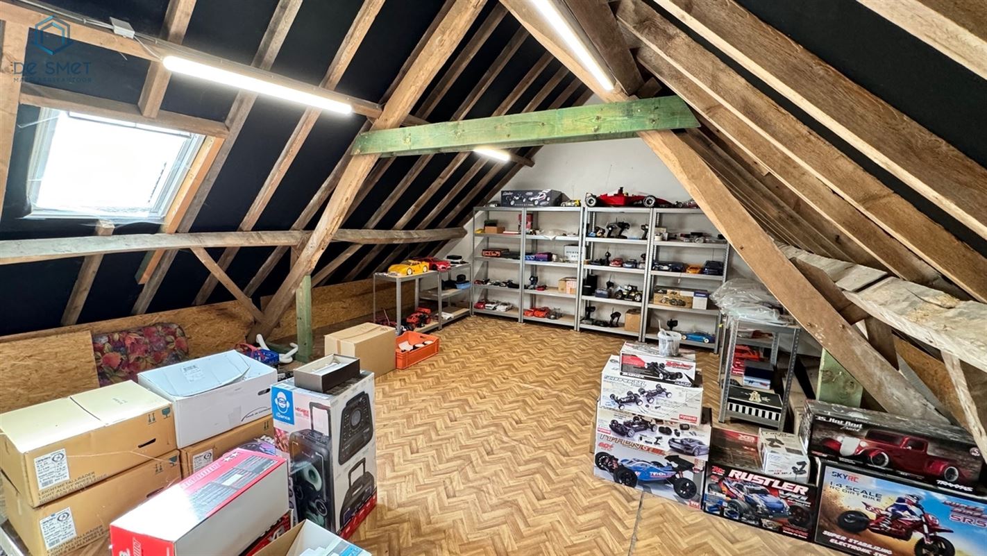 Volledig ingerichte garageruimte met een zolder die eenvoudig omgevormd kan worden tot woonruimte