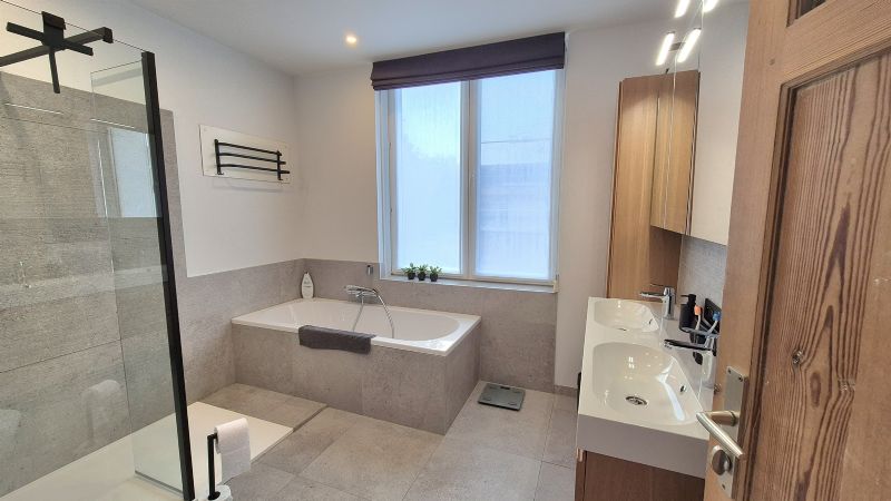 •Badkamer met ligbad, inloopdouche, dubbel lavabomeubel en toilet