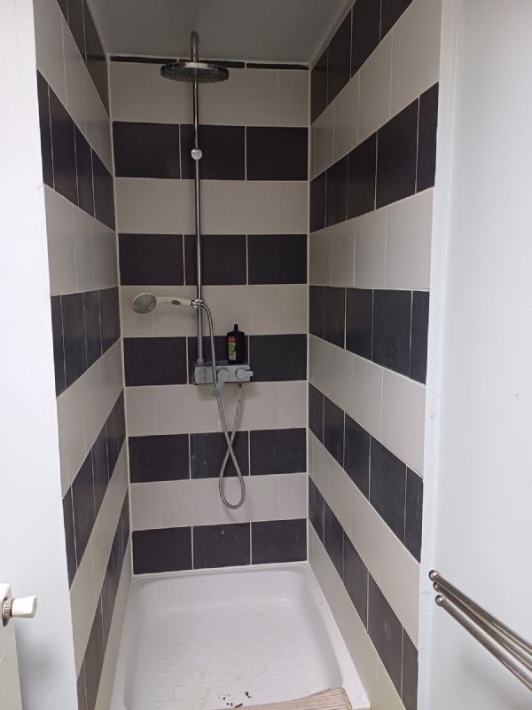 •Badkamer met douche, lavabomeubel en toilet