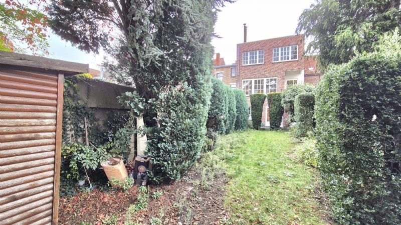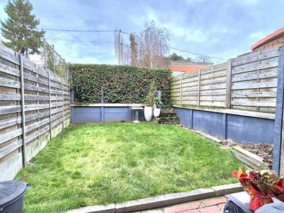 Achteraan de woning bevindt zich een mooi aangelegde tuin met terras, perfect om te genieten van rust en privacy midden in de stad.