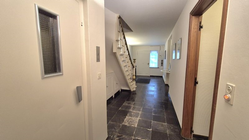 • Ruime brede inkomhal met Balegemse natuurstenen vloer (kerktegel), vestiaire en gastentoilet.