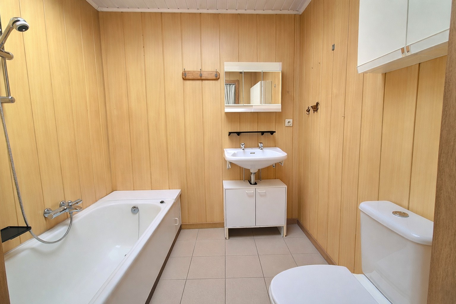 - Badkamer met ligbad, lavabo en toilet