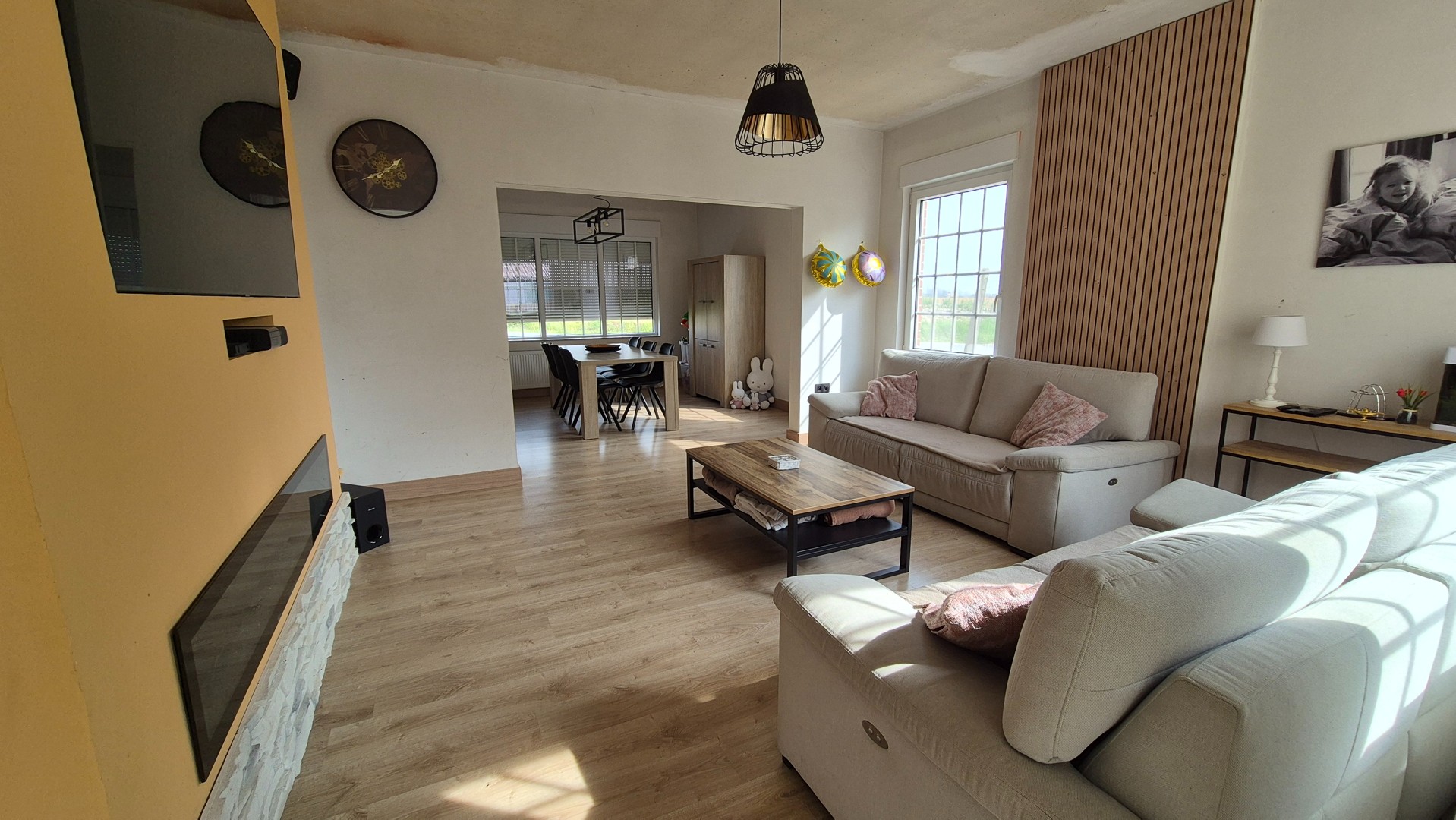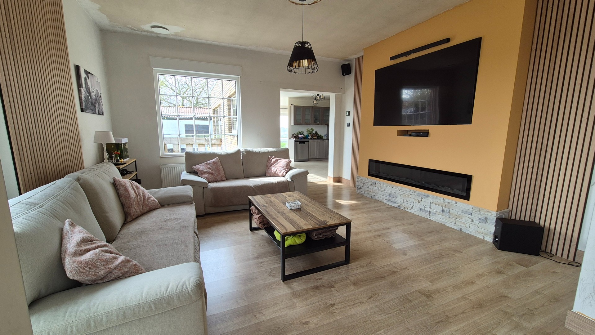 - Ruime en lichtrijke leefruimte met gezellige uitstraling