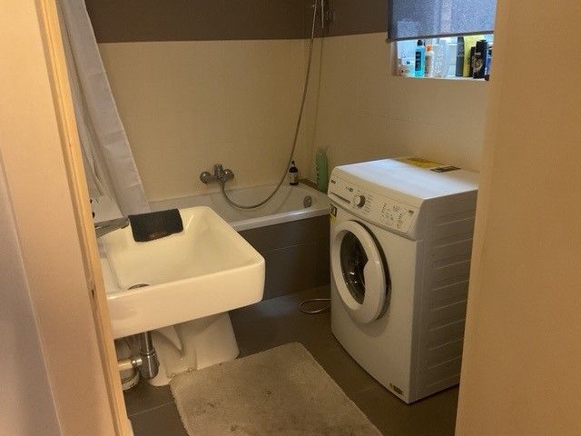 •Badkamer met lavabo, ligbad en aansluiting voor wasmachine