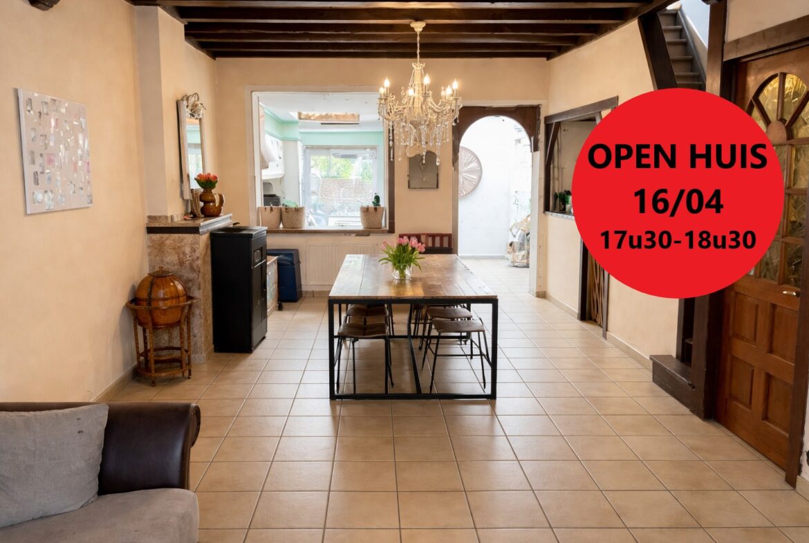 OPEN HUIS DONDERDAG 16/04 van 17.30u tot 18.30u. Ruime gezinswoning met 3 slaapkamers, ZUIDtuin,… in rustige buurt. Opp 211m². EPC 273 kWh/m². (Ref.17200)