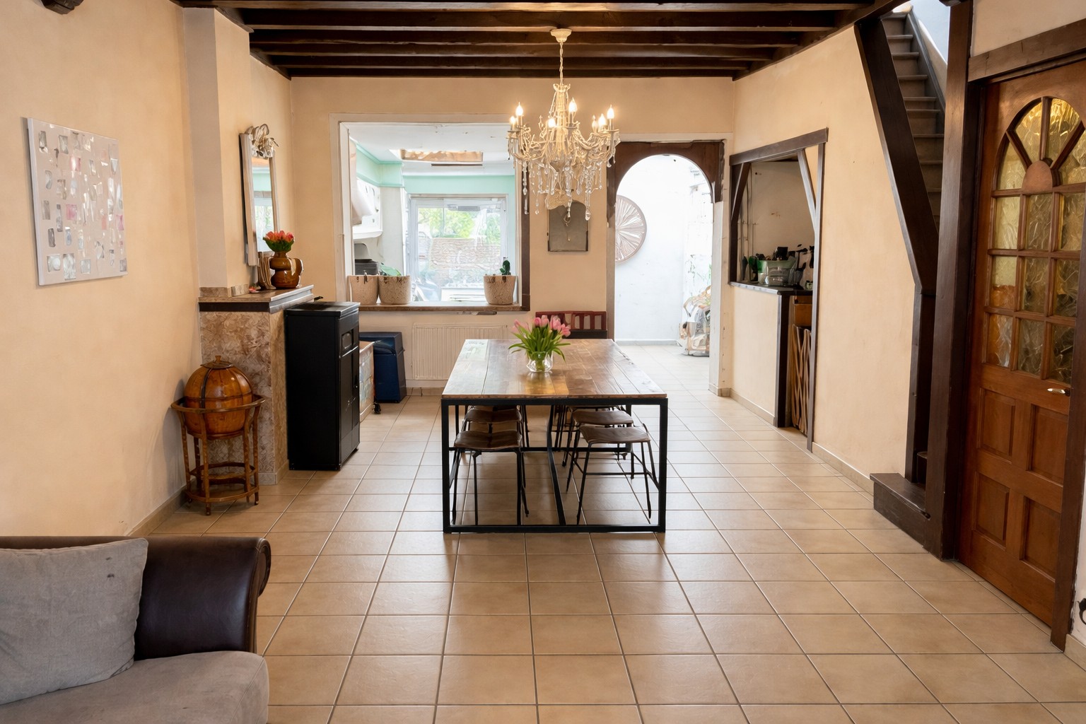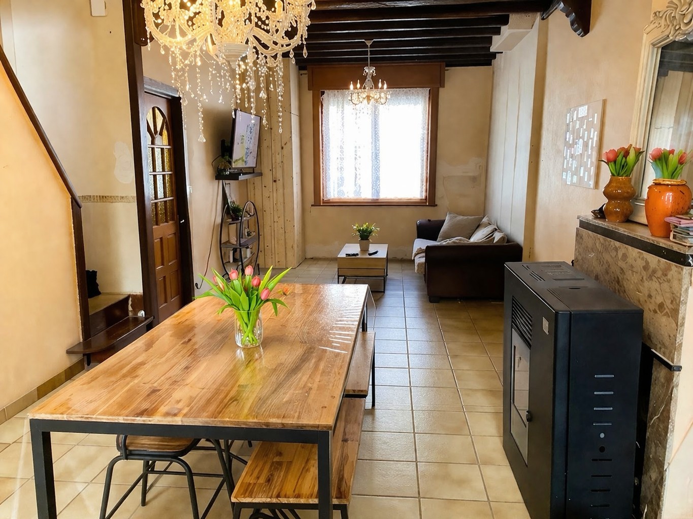 - Gezellige lichtrijke leefruimte met salon en eetplaats