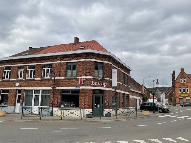 Commercieel gelegen hoekgebouw bestaande uit horecazaak en appartement aan de voet van de Kluisberg te Amougies, omvattende o.a. op het GELIJKVLOERS: