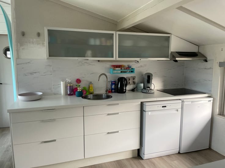 De woning beschikt over een ruime en lichtrijke leefruimte met gezellige zithoek en open haard, een eethoek en een volledig uitgeruste open keuken. Verder zijn er twee slaapkamers en een mooie badkamer met douche, lavabo en toilet.