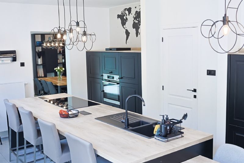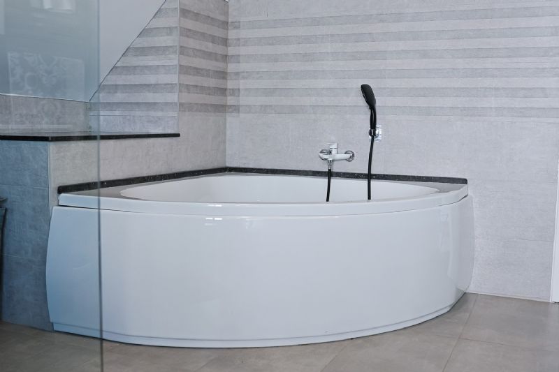 •Stijlvolle badkamer met hoekbad, inloopdouche en toilet