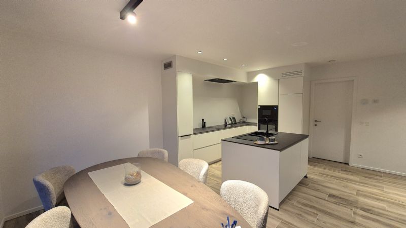 Bij het betreden van de woning valt meteen de lichtrijke leefruimte op, waar grote raampartijen zorgen voor een overvloed aan natuurlijk daglicht en een mooie connectie met de tuin. De open keuken sluit naadloos aan op de leefruimte en vormt het hart van de woning – ideaal voor gezellig samenzijn en modern wooncomfort.