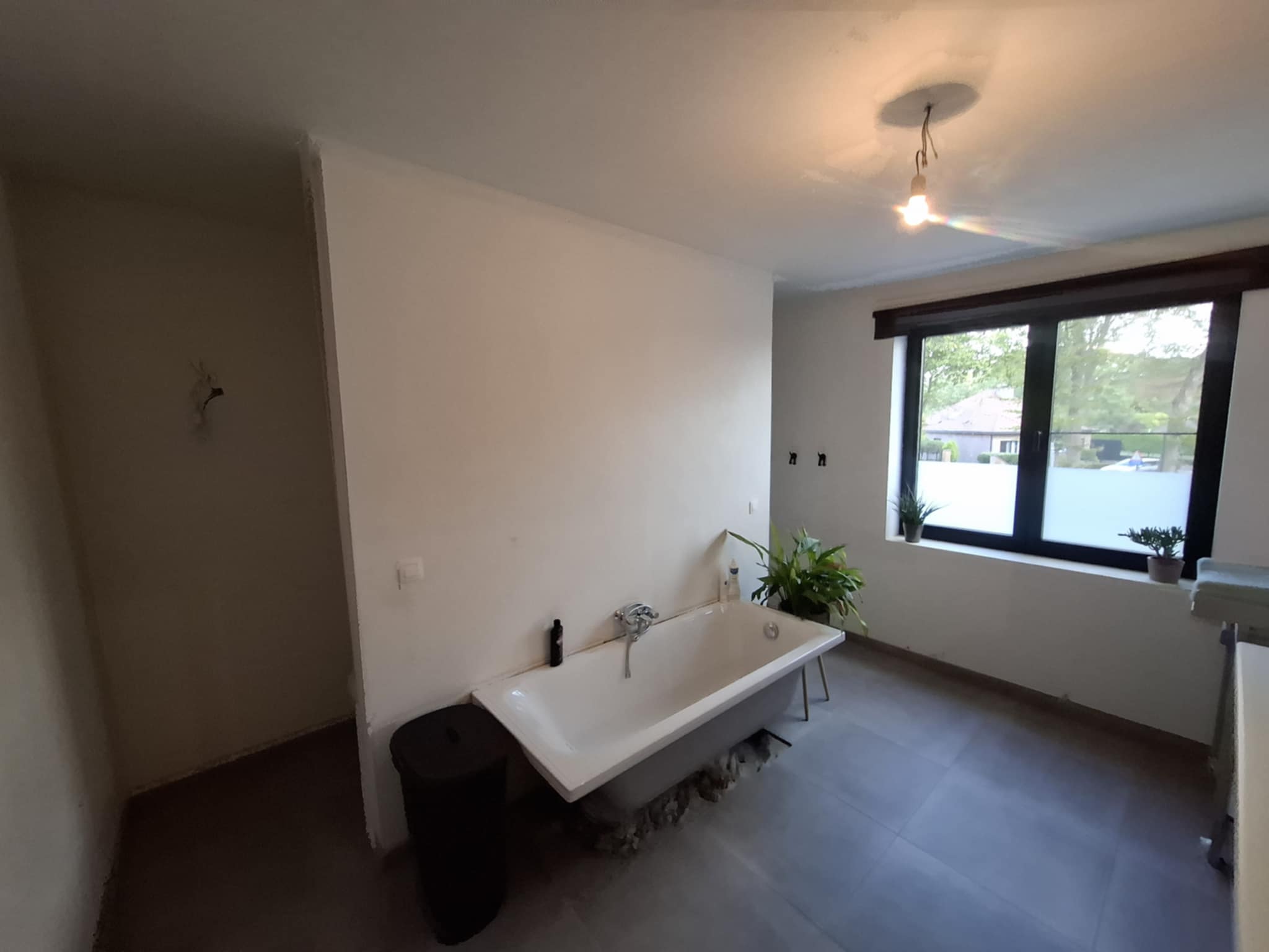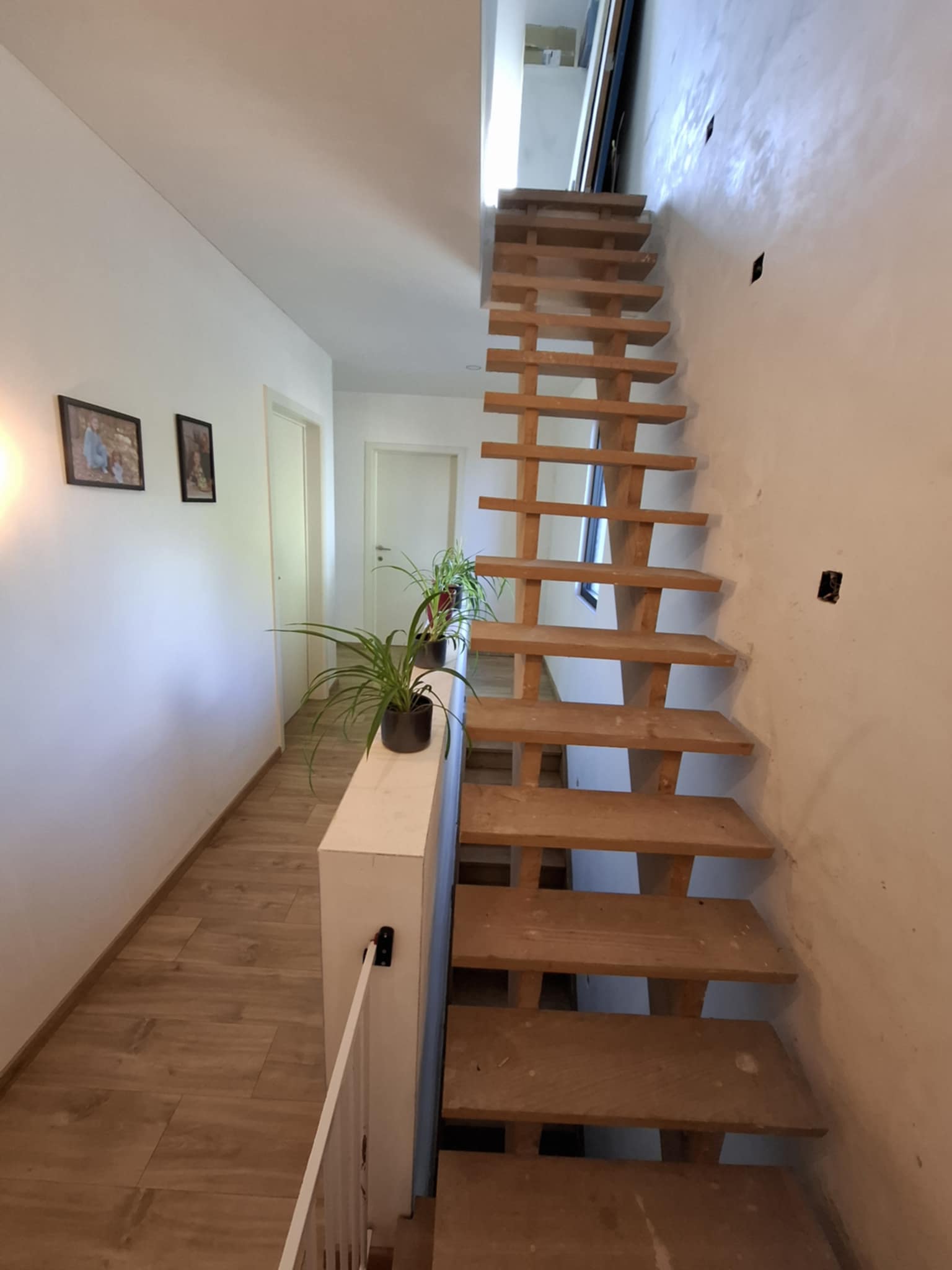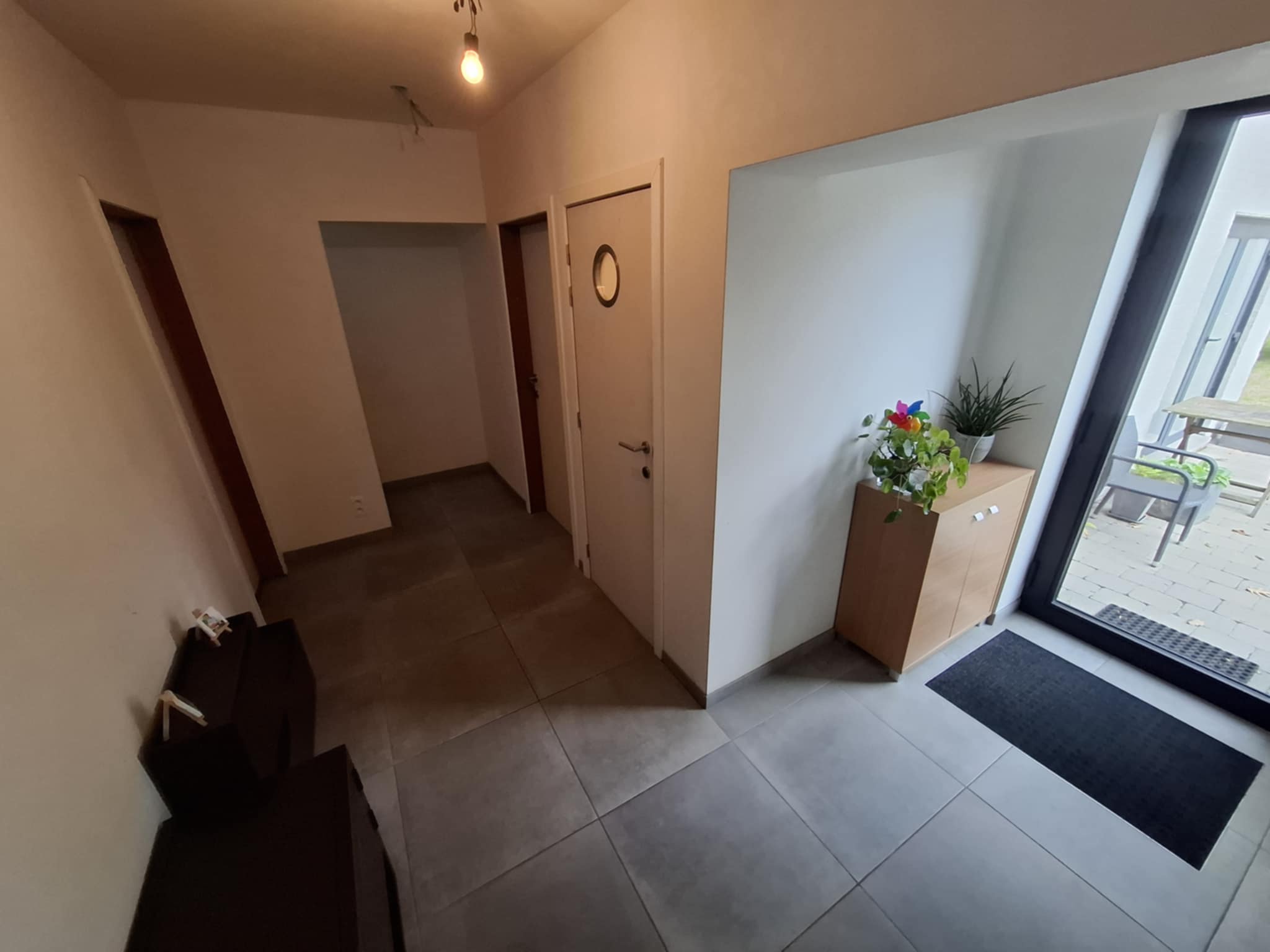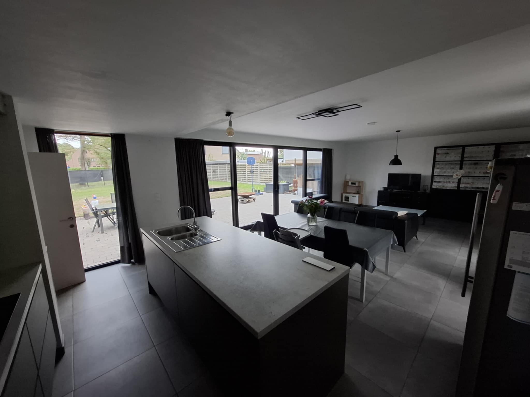 Via de inkomhal betreedt u de ruime en lichtrijke woonkamer, waar grote raampartijen uitkijken op de tuin. De vernieuwde vloeren met vloerverwarming zorgen voor een aangenaam wooncomfort in elk seizoen.