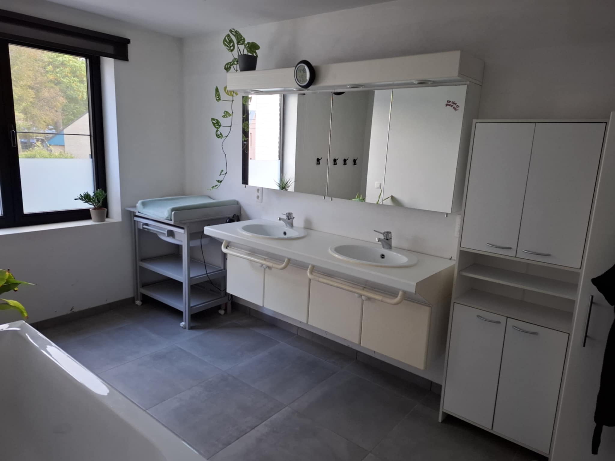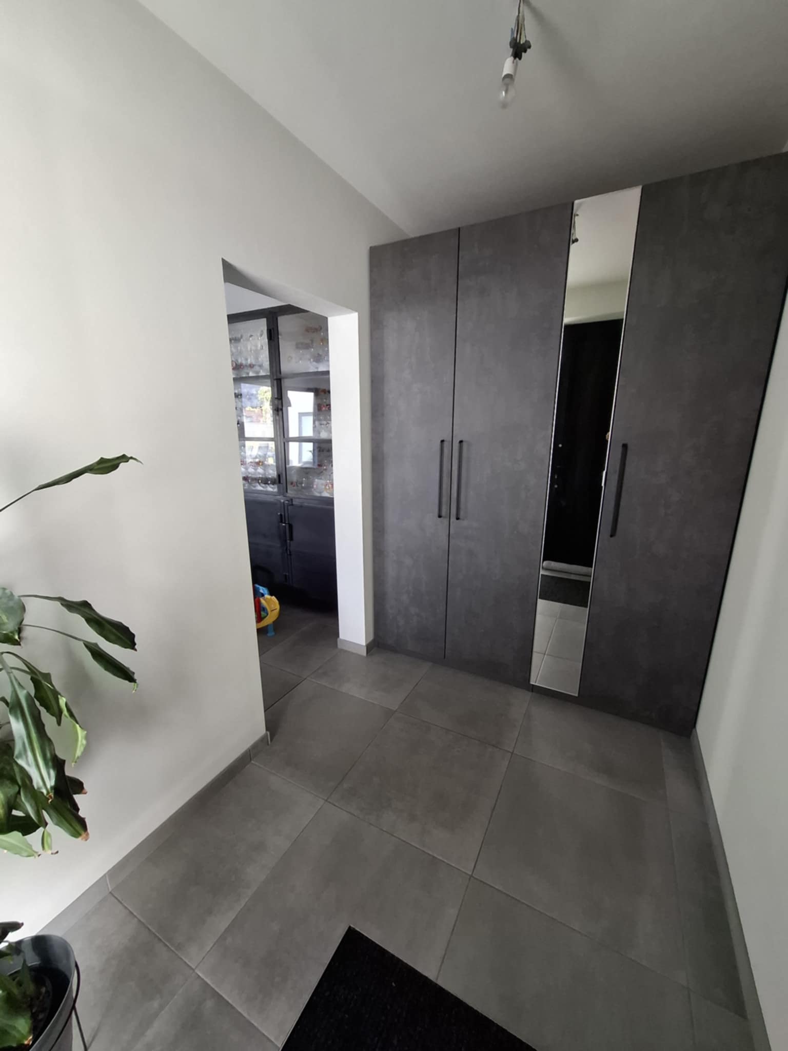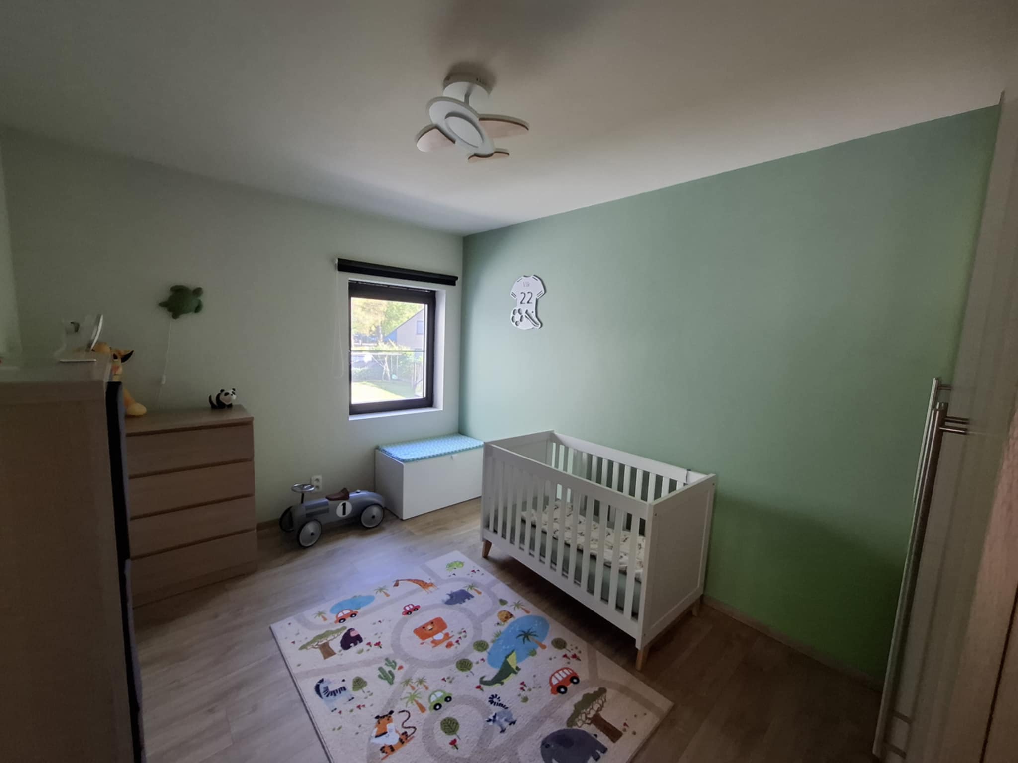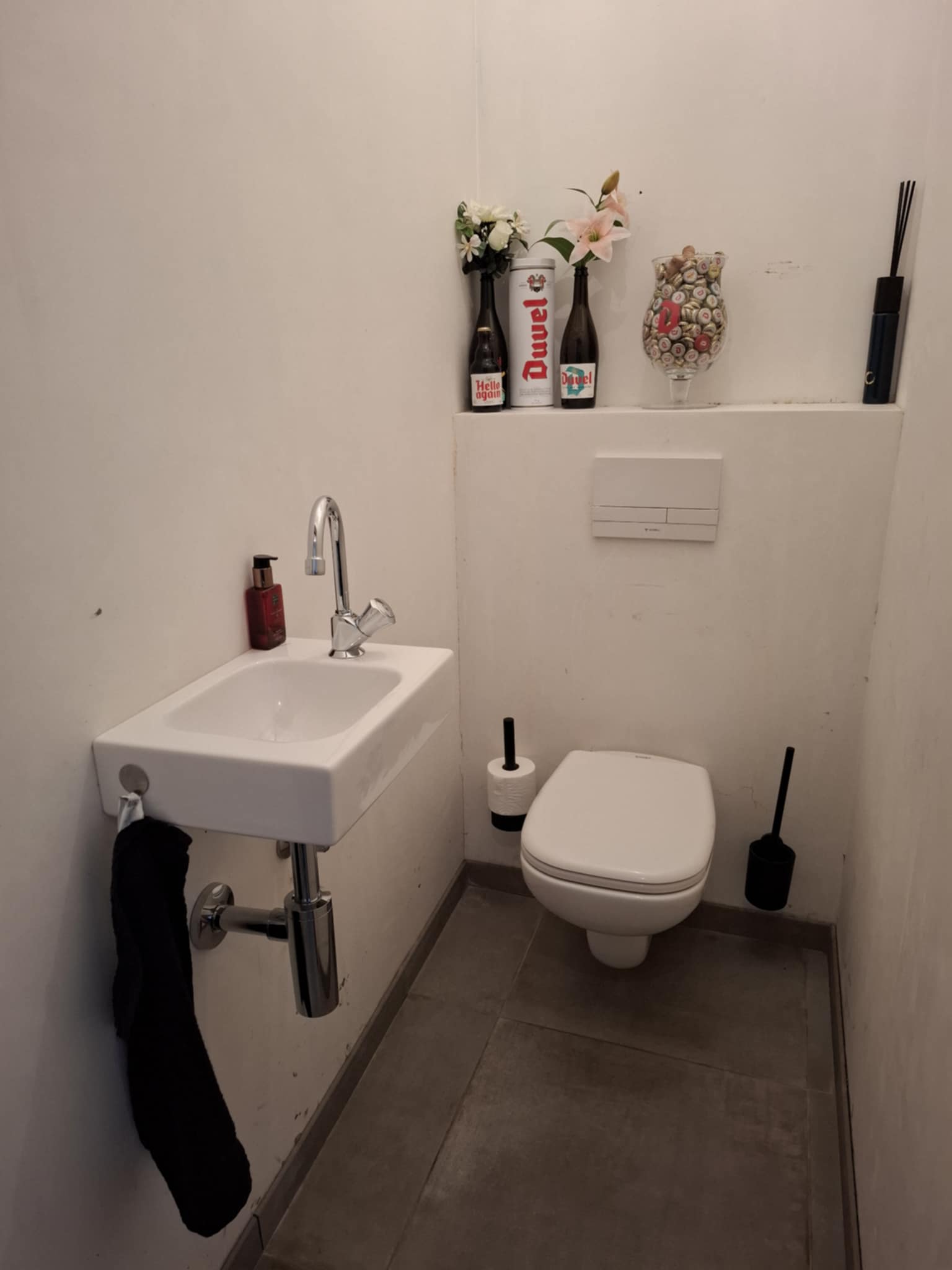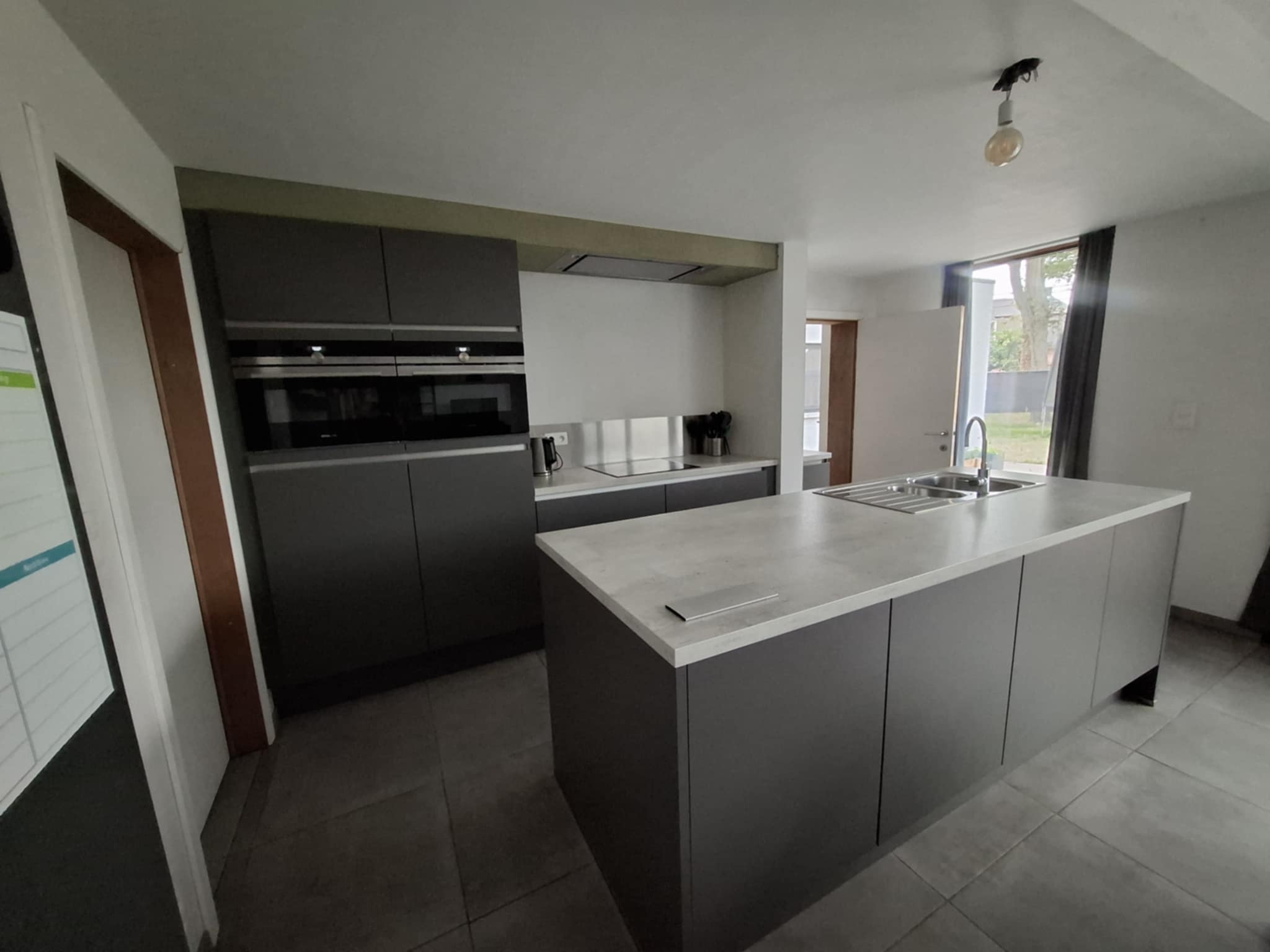 Via de inkomhal betreedt u de ruime en lichtrijke woonkamer, waar grote raampartijen uitkijken op de tuin. De vernieuwde vloeren met vloerverwarming zorgen voor een aangenaam wooncomfort in elk seizoen.