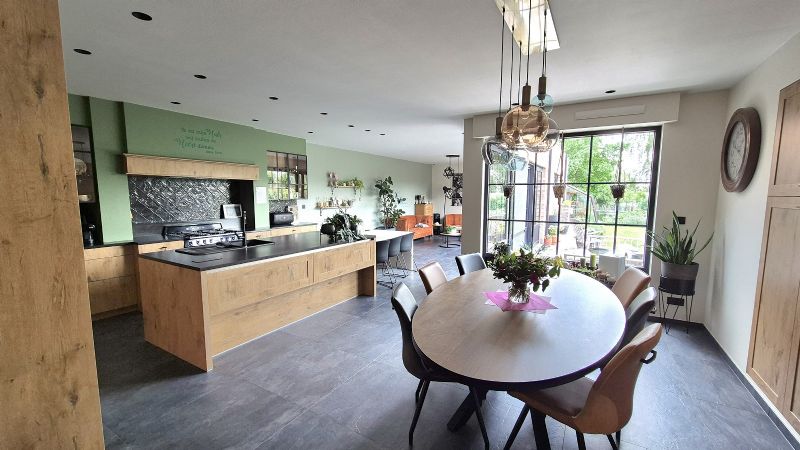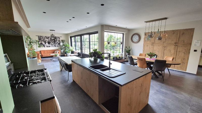 •Recent nieuwe open keuken o.a. met gasfornuis (5-pits), oven, inbouw koelkast en diepvries, dampkap, plaats om vaatwas te integreren, natuurstenen werkblad, ruime eetplaats, grote raampartijen met mooi zicht op de tuin,…