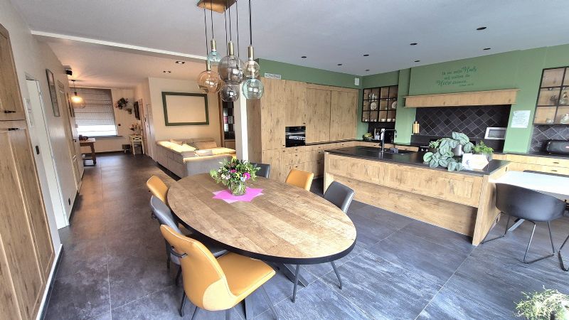 •Héél ruime leefruimte/living met salon (met inbouwspots, mogelijkheid gashaard), ruimte om speelhoek of bureau te integreren, overlopend naar de eetplaats met inbouw wandkast en héél ruime luxueuze open keuken.