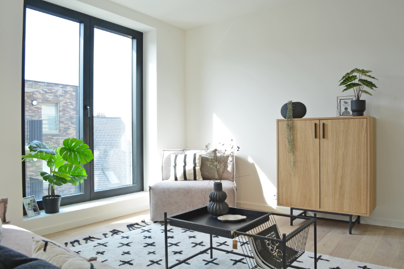 Het appartement beschikt over twee volwaardige slaapkamers en is afgewerkt met oog voor detail en kwaliteit. Dankzij de grote raampartijen geniet u van een overvloed aan natuurlijk licht en een ruimtelijk gevoel in elke leefruimte.